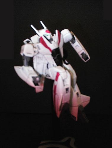 Here are some pictures of his completed Bandai 1/100 Macross VF-2SS model kit. Hmmm something is missing from these pics....the armor! Its quite rare we see the kit built without it.
