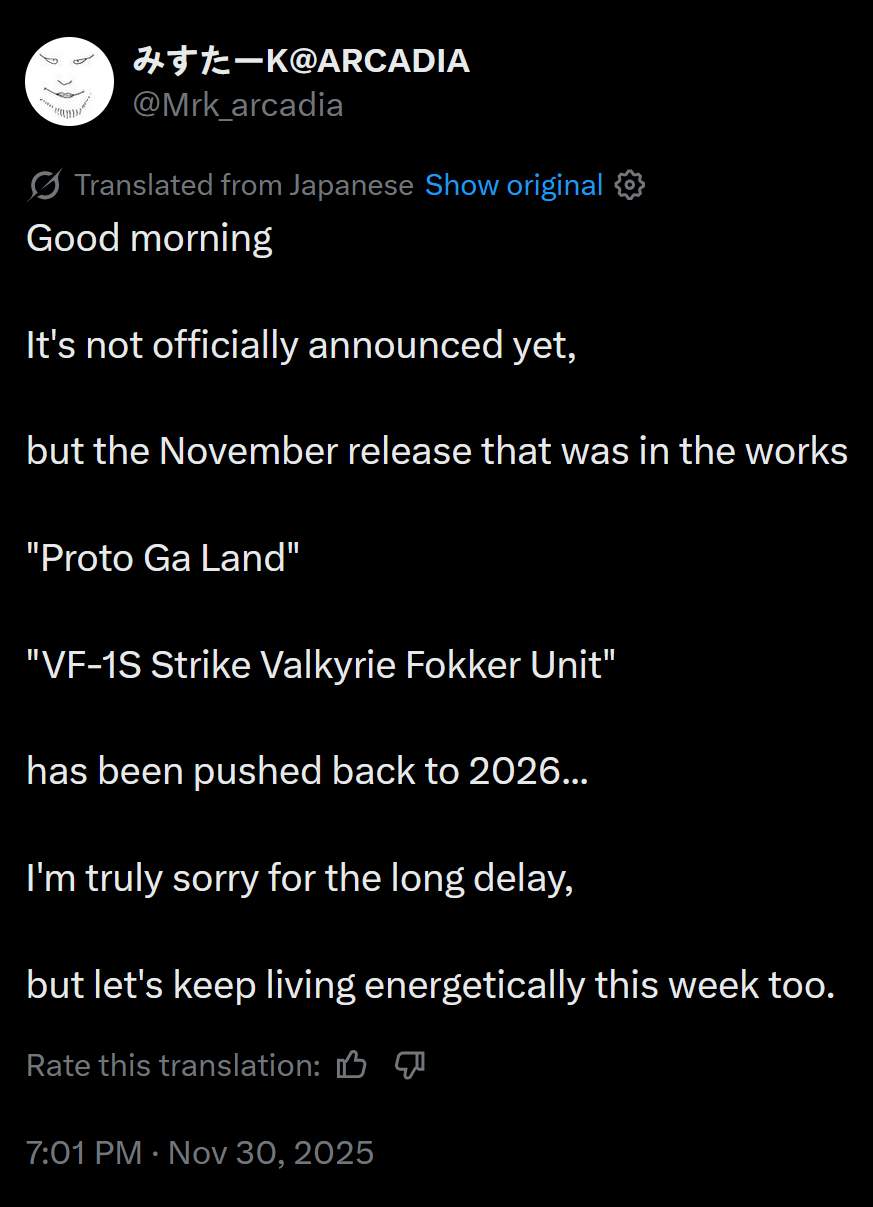 It's definitely not the same, but my thought is mostly on the side of how much return they can expect to see on their investment. Without going too deep into details I don't know a ton of, I've always been under the assumption that Yamato's success with the VF-1 funded all of their more expensive ventures (VF-19s, VF-17s, and VF-4), but there wasn't enough demand to keep up with the higher production costs, and the VF-1 market got entirely saturated, so they couldn't use it as a reliable funding pool. In terms of Macross7, I think the only Yamato release to get multiple production runs was the Fire Valk (not counting bundle re-releases for the VF-17 packs). It's also the only one Arcadia reissued, and it made sense for the Japanese market, because yeah, it's iconic for that series. In Bandai's case though, making another Fire Valk at this point feels like a bad one to start off with, especially if they're interested in actually selling to international markets. There are just so many factors working against it: - Both Yamato and Arcadia have sold multiple runs of that specific valk in that same scale, so the market is fairly well saturated in both regions - There is so little difference between the two different products that probably only hard-core collectors are going to think "I need both" - Macross7, Basara, and the bright red and yellow scheme are all what I'd just call "acquired tastes." On top of that, they're actively sabotaging their own releases, by selling the HMR version so close. Throw in the tariff situation, and you're going to lose even more customers, because at least some existing fans who would otherwise happily gobble up duplicates are probably going to just convince themselves their old Yamato/Arcadia is good enough. Like, I get it, the Fire Valk is the icon of the show, so not making it first would feel dumb too. But trying to sell it again feels like a bad bet to make. I would love Bandai to start offering up more polls to see what people want, but I also don't think they have the mentality to make those polls effective on the international market. If I'm remembering correctly, we did have a poll long ago to help decide what the first international releases should be, but I think all it really covered was which series people wanted products from, not anything as specific as characters or paint schemes. I think that was one of the factors that led to the weaponless YF-19 re-release. (I also think this was before the licensing fiasco was "settled," so a lot of people blew their feedback comments on wishes for SDFM/DYRL products that we still can't get.) I will say though.. the Kairos getting a reissue is a wild card, and I'm really surprised they would even consider it. I don't want to get my hopes up, but I would love someone at Bandai to make the mental bridge between cool transforming aircraft and military aircraft collectors. People gobbled up the Kairos, and the prices stayed sky high from the get-go. I would love them to experiment that way with the VF-19, or pretty much any other Macross product they can sell here.