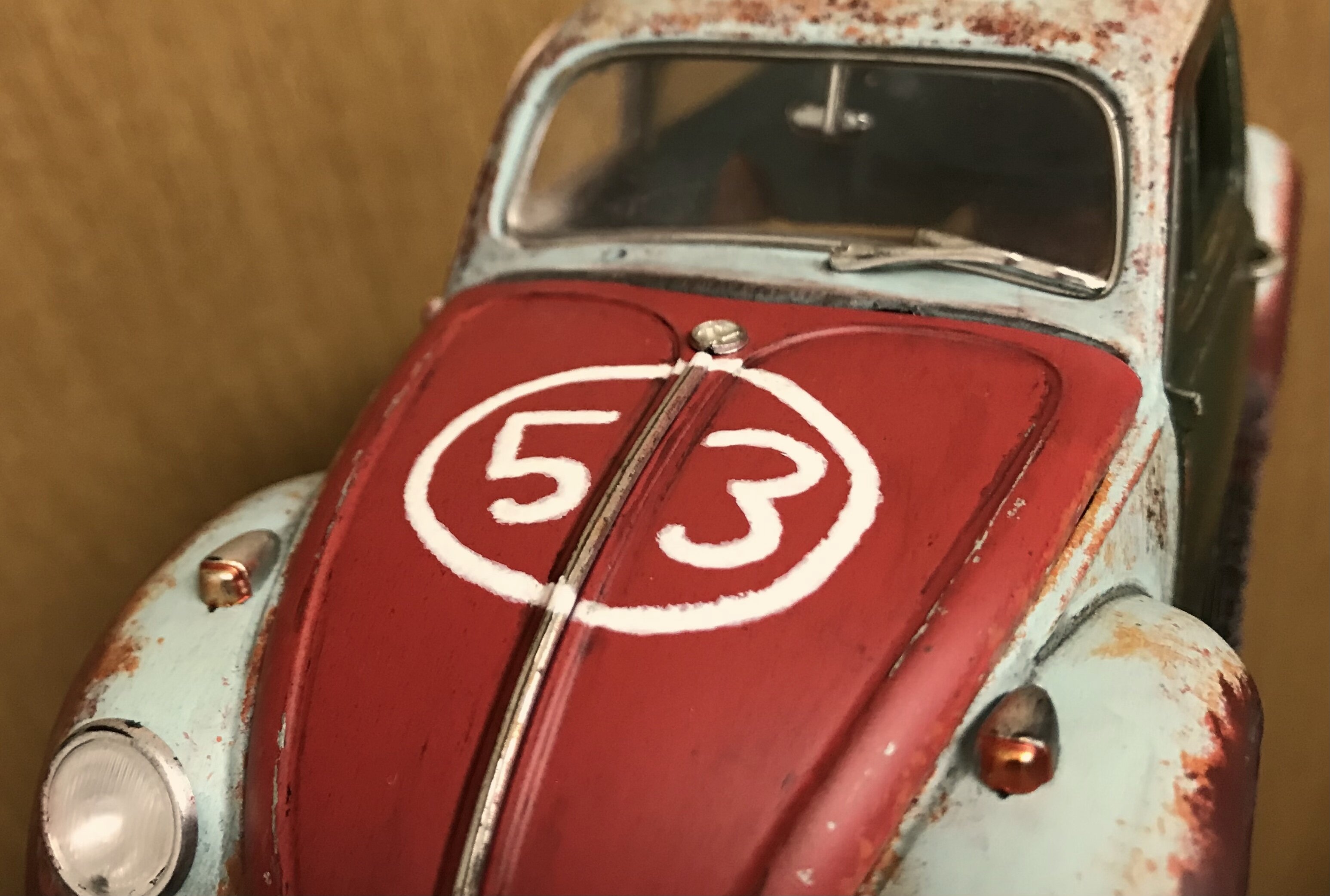 Adding convincing dents to the diecast Beetle frame turned out to be impossible, so I compensated by denting the hell out of the bumpers. π Two bullet holes were added at the client's request... ...as was the "spray-painted" graffiti on the hood. I'm sure you'll get the reference... but who among you recognizes the licence plate number? π Dude, that detail is INSANE. π€―
