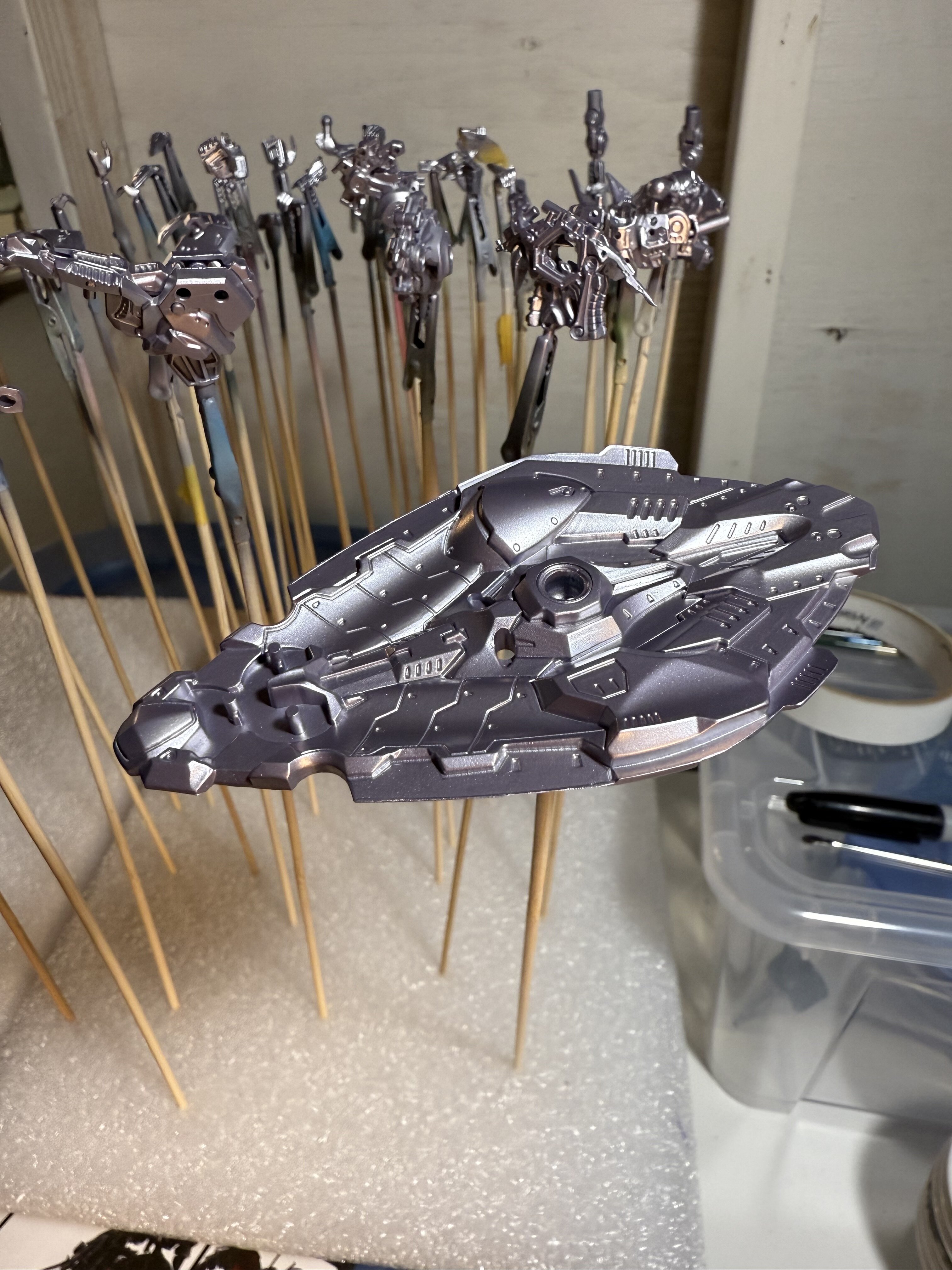 Awesome, @Thom this is going to be cool. Managed to get the frame color down. I’m digging the silver with some subtle purple shine to it. Once dry I will just brush paint the small details and avoid masking. Shouldn’t take too much more. Just lots of down time between painting and top coating etc…