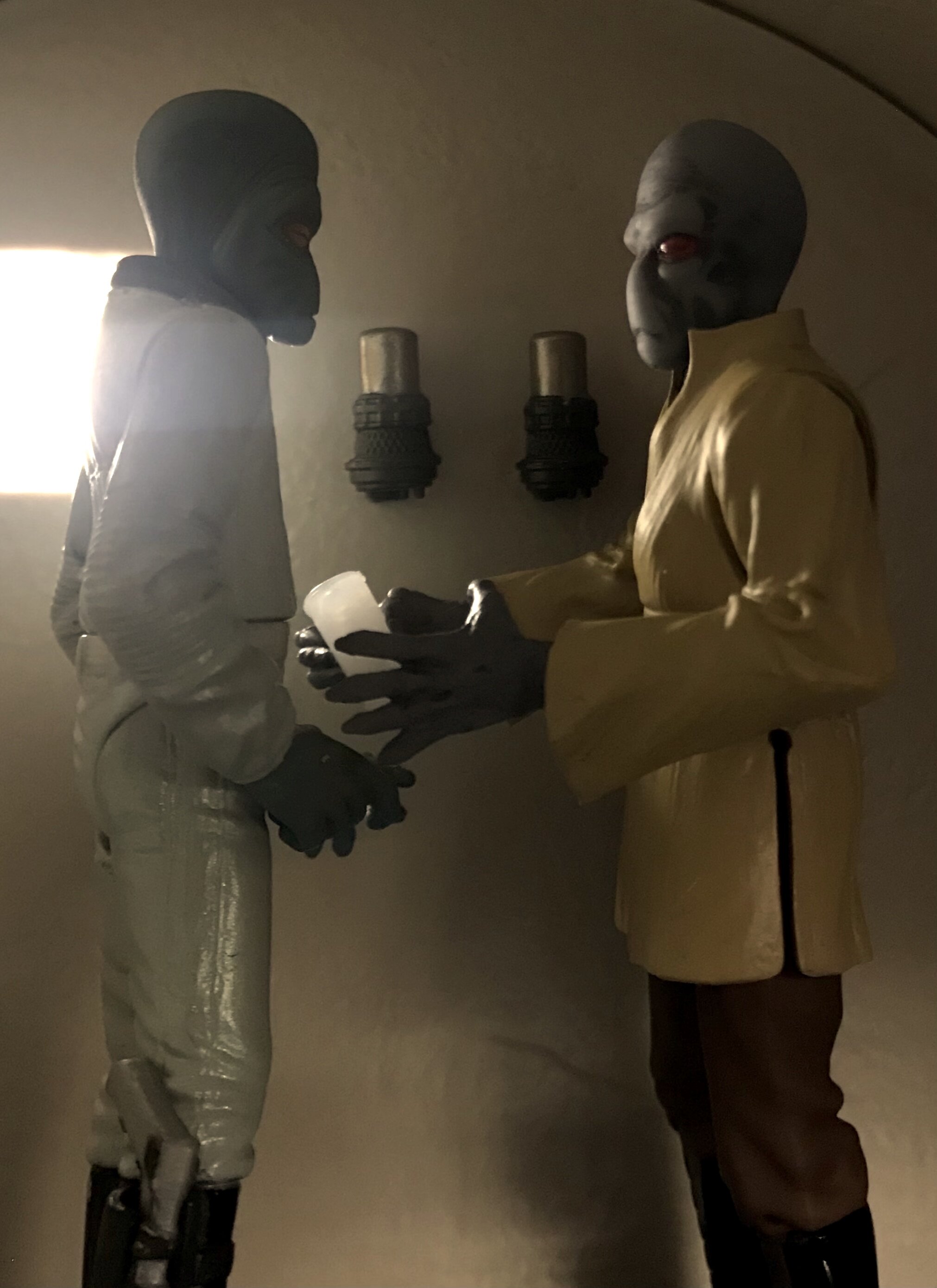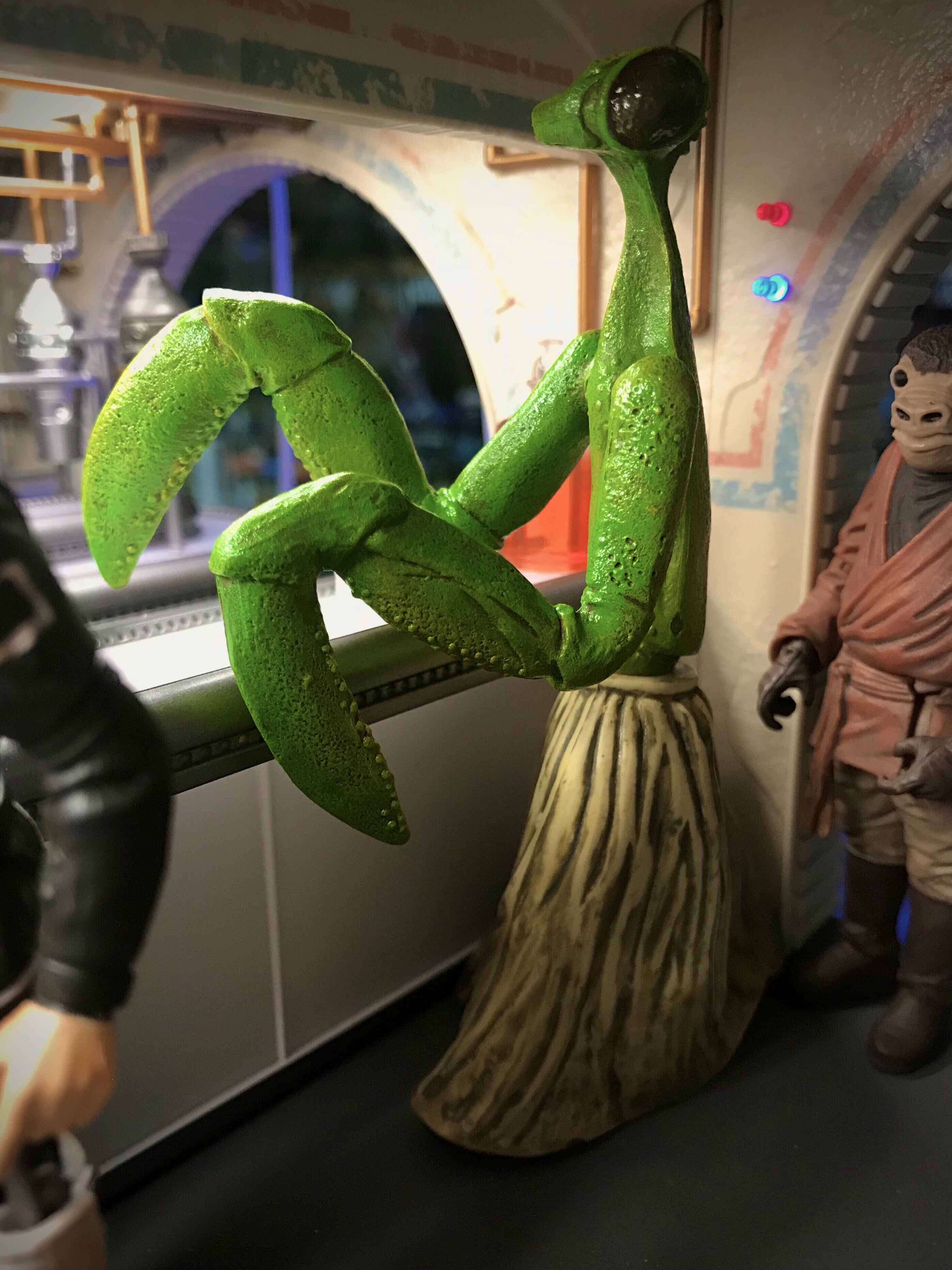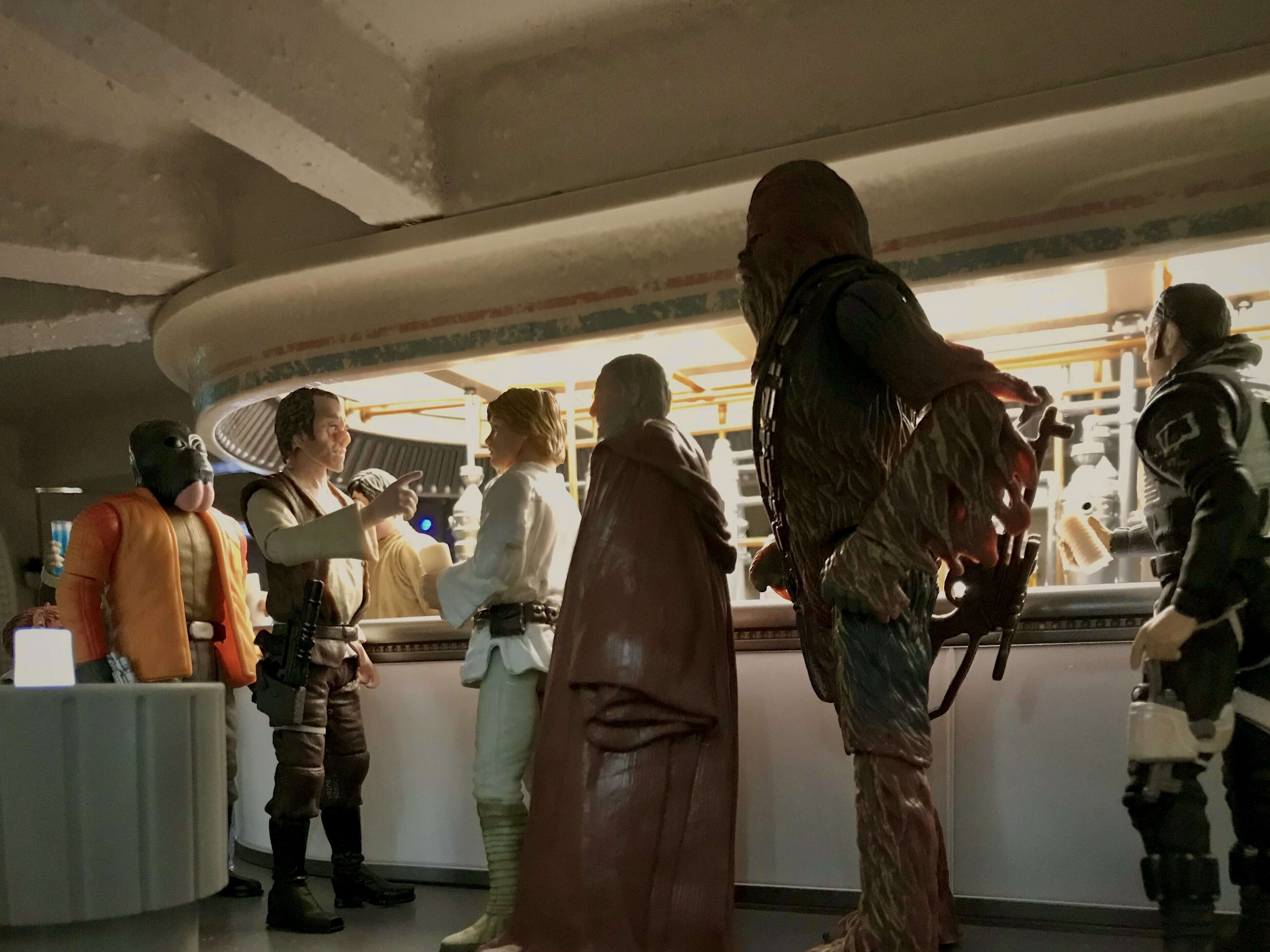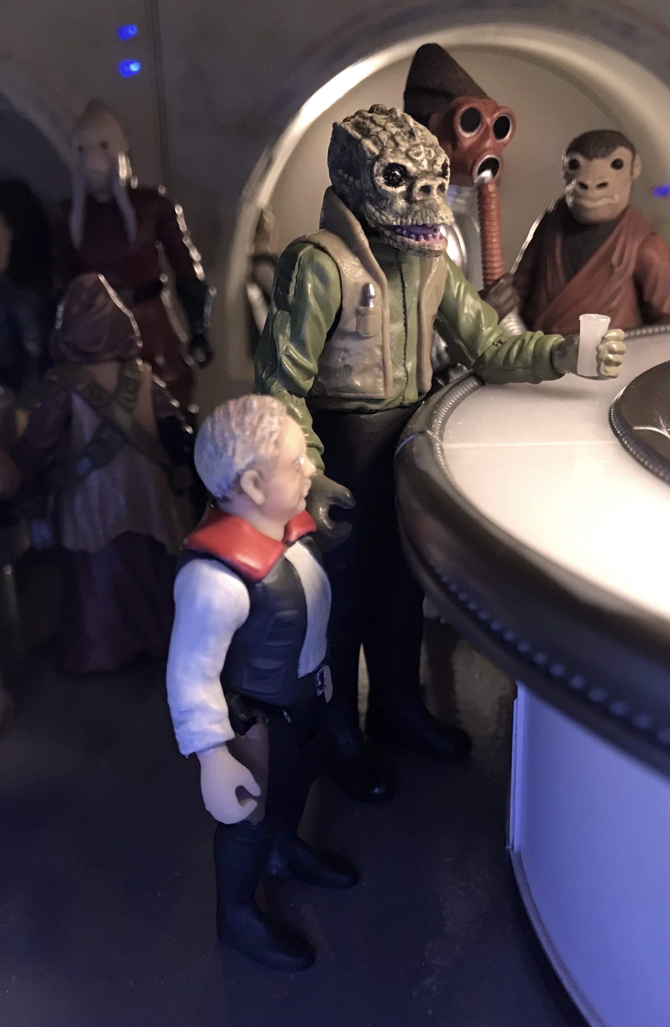 2. With about a month left before the "40th anniversary of Robotech" display I've planned for our annual modeling exhibit, I've still got to paint my 1:48 Regult, three 1:48 Destroids, four 1:48 Logans, and two 1:1400 SDF-1s... and dammit, I still can't tear myself away from the Mos Eisley cantina! Having completed the ceiling, I've been fine-tuning the lighting and figure placement... ...repainting Hasbro figures... ...and 3D-printing parts for characters that never got action figures. There are just so many more characters I want to complete, but I've got to put Star Wars aside and shift my focus back to Macross... 😓