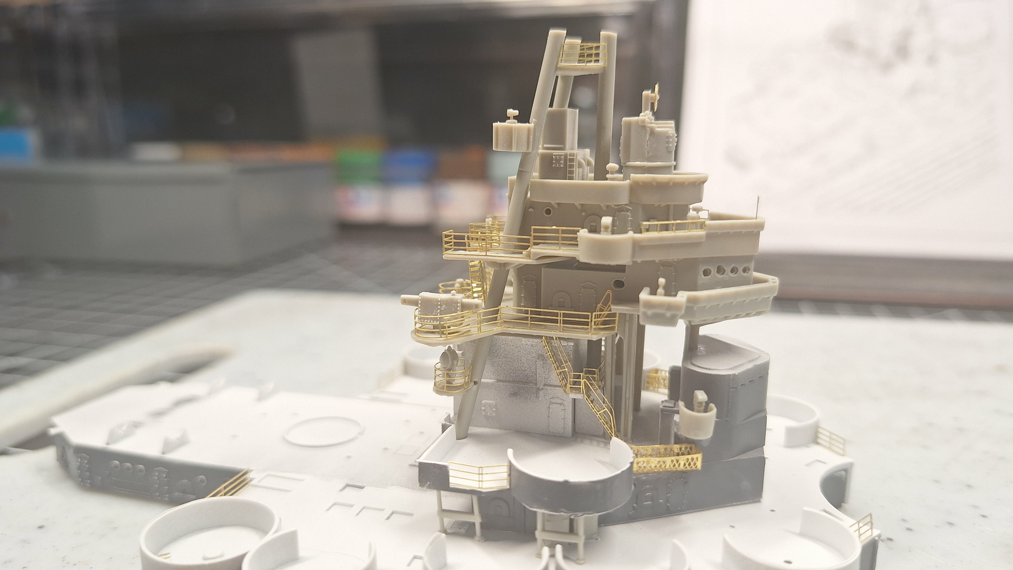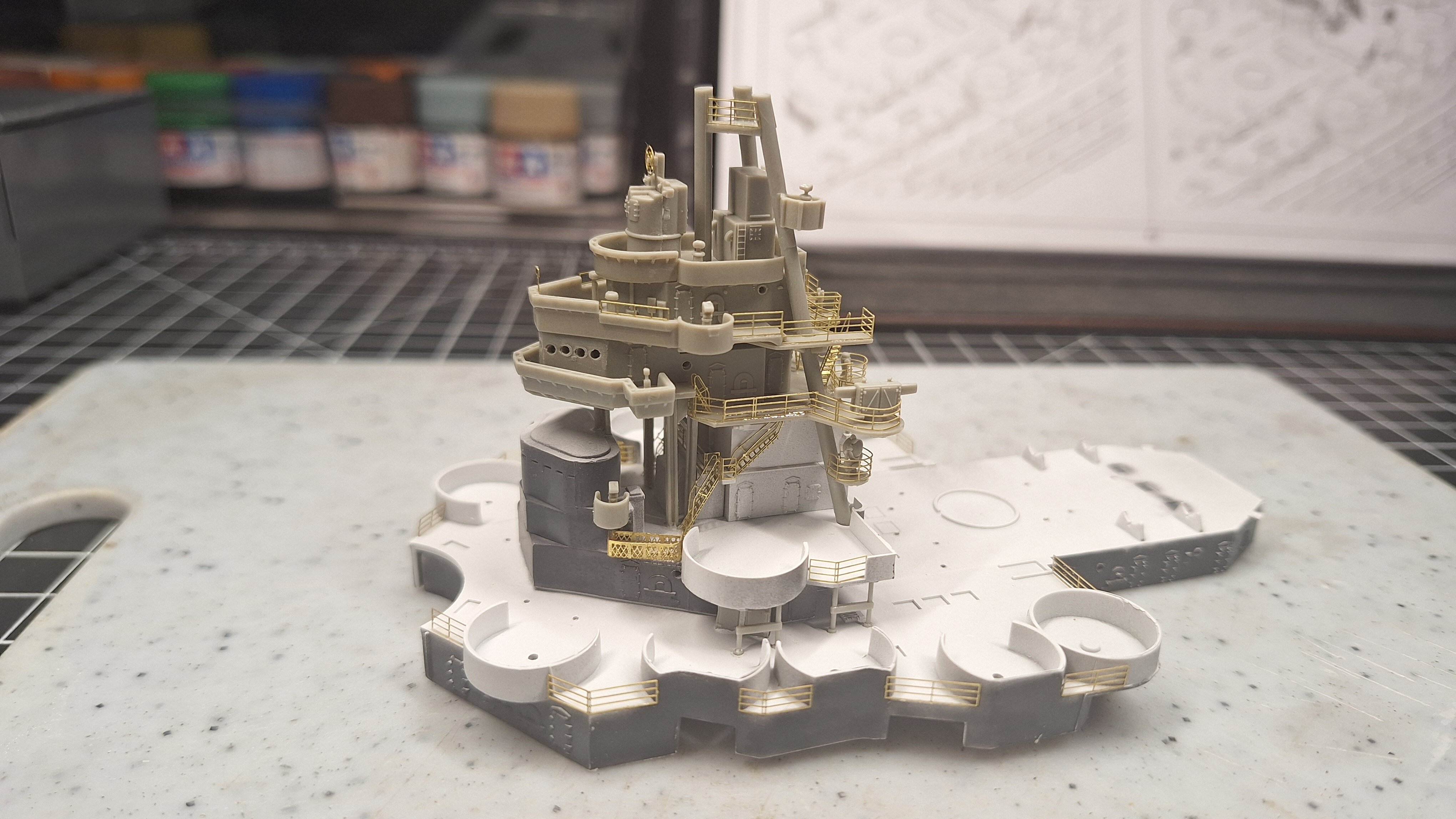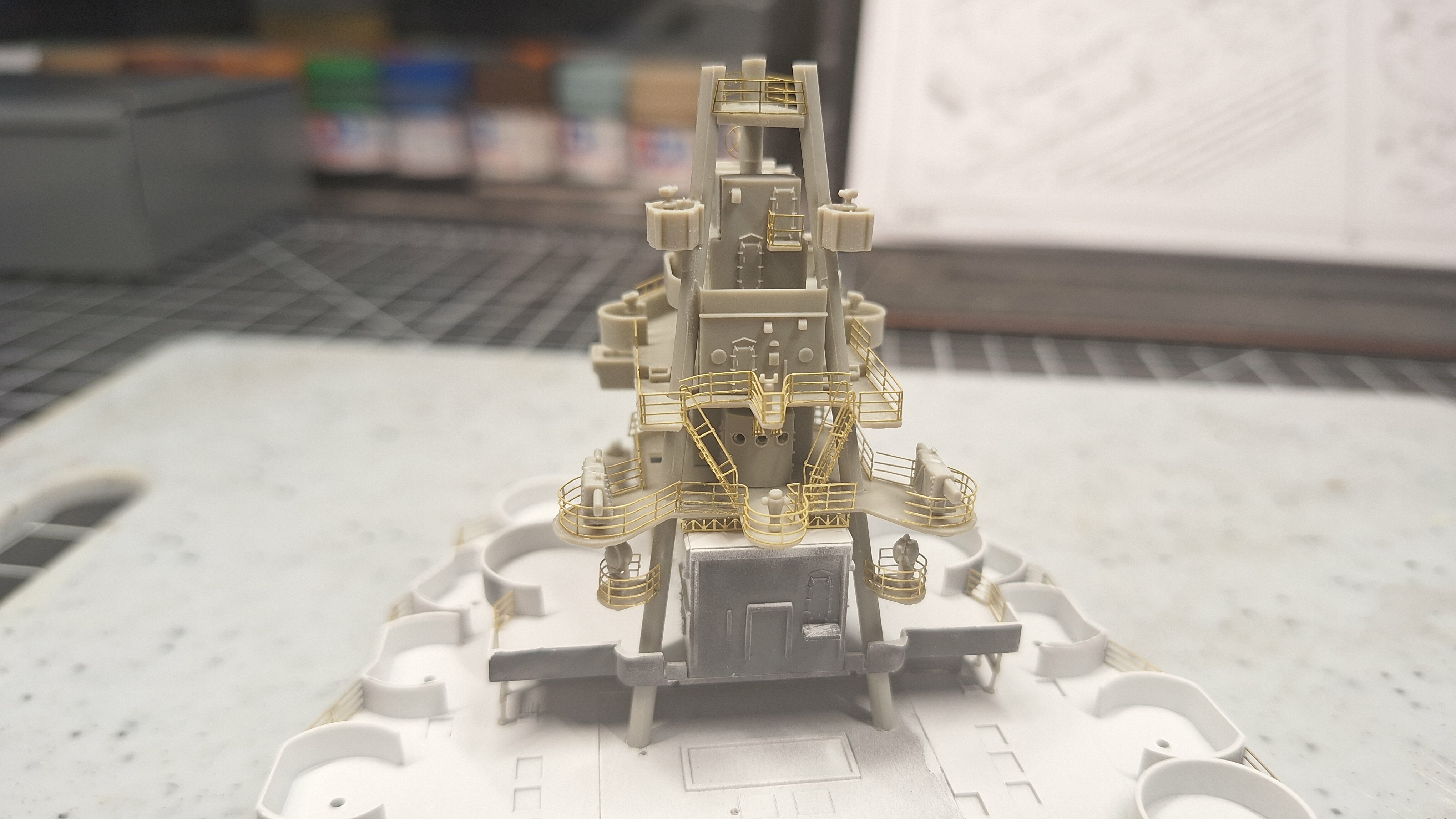How I spent my last two days...... 1/350 photoetch is........not my favorite thing to do. I'll just leave it that. Only messed up one spot, I'll have to dig out some extra Titanic railing to fix it, but overall, I'm gonna give myself a thumbs up on this. Never rolled PE before and never folded tiny little three dimensional baskets either... And PE staircases are my nemesis! I need a LARGE drink... LOL. And this is only the first tower I've completed... đ¤ đ đ