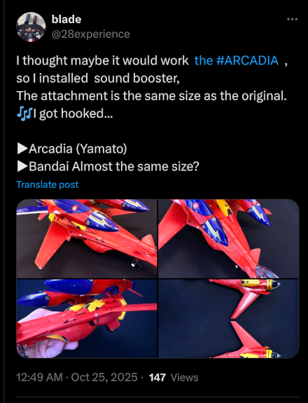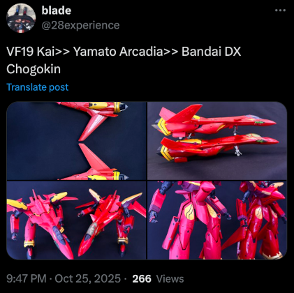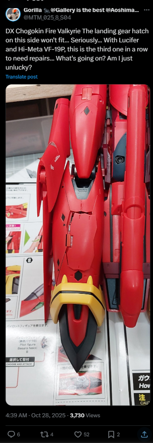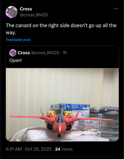 downscaled from https://twitter.com/28experience/status/1983178984725852185 --- Cross has an unfortunate defect with his copy: https://twitter.com/cross_W42S/status/1983164809609916737 web-translated: while Gorilla's bit frustrated with his recent string of Bandai mfg-luck... https://twitter.com/MTM_025_8_S04/status/1983136583575580889 web-translated: