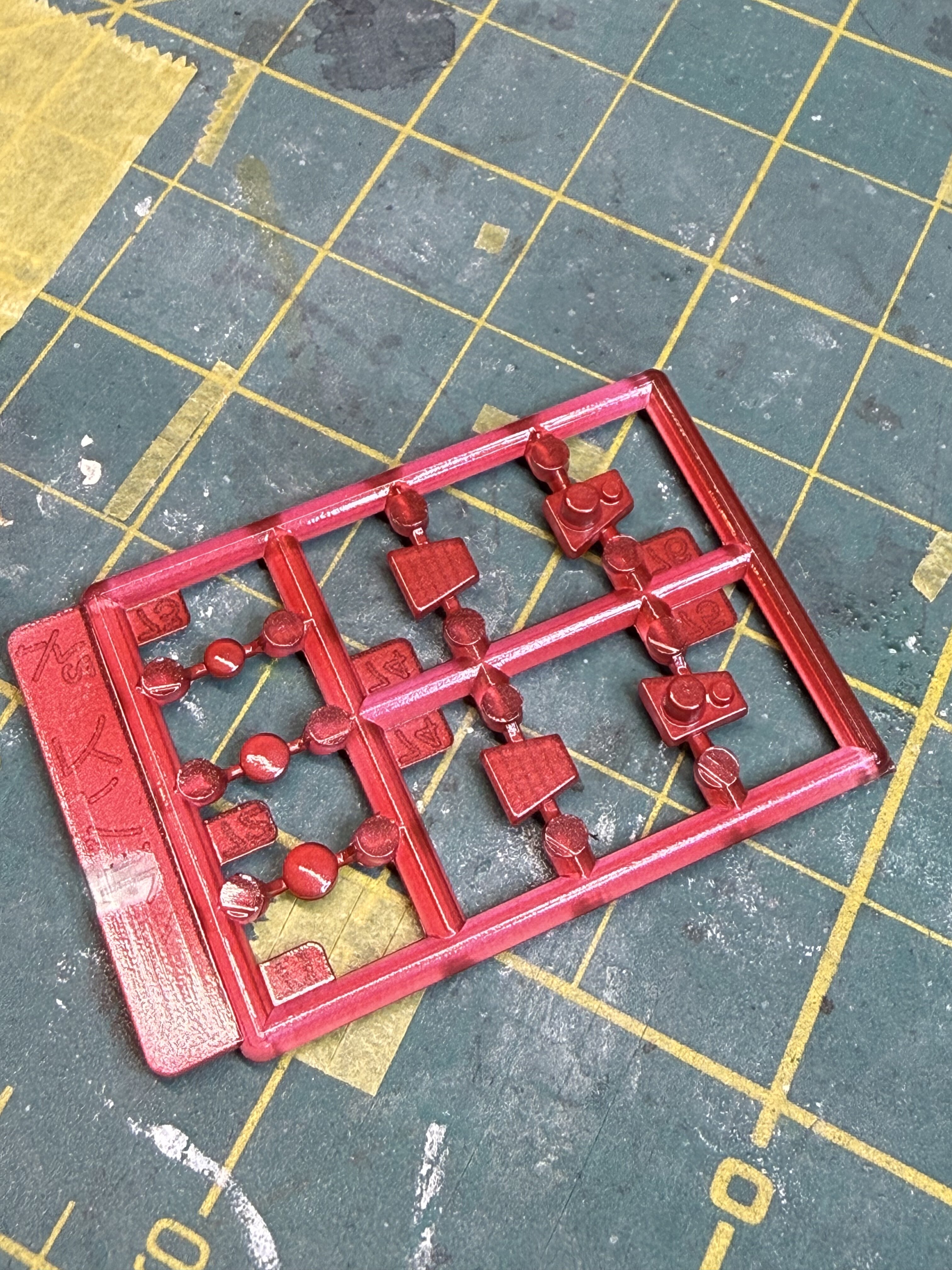 Almost there. A few more layers…red, topcoat, decals, panel line and we are good. I decided to pant the clear lens parts with clear red on front and silver on back. Sort of candy-ish but a clear middle refracting light.