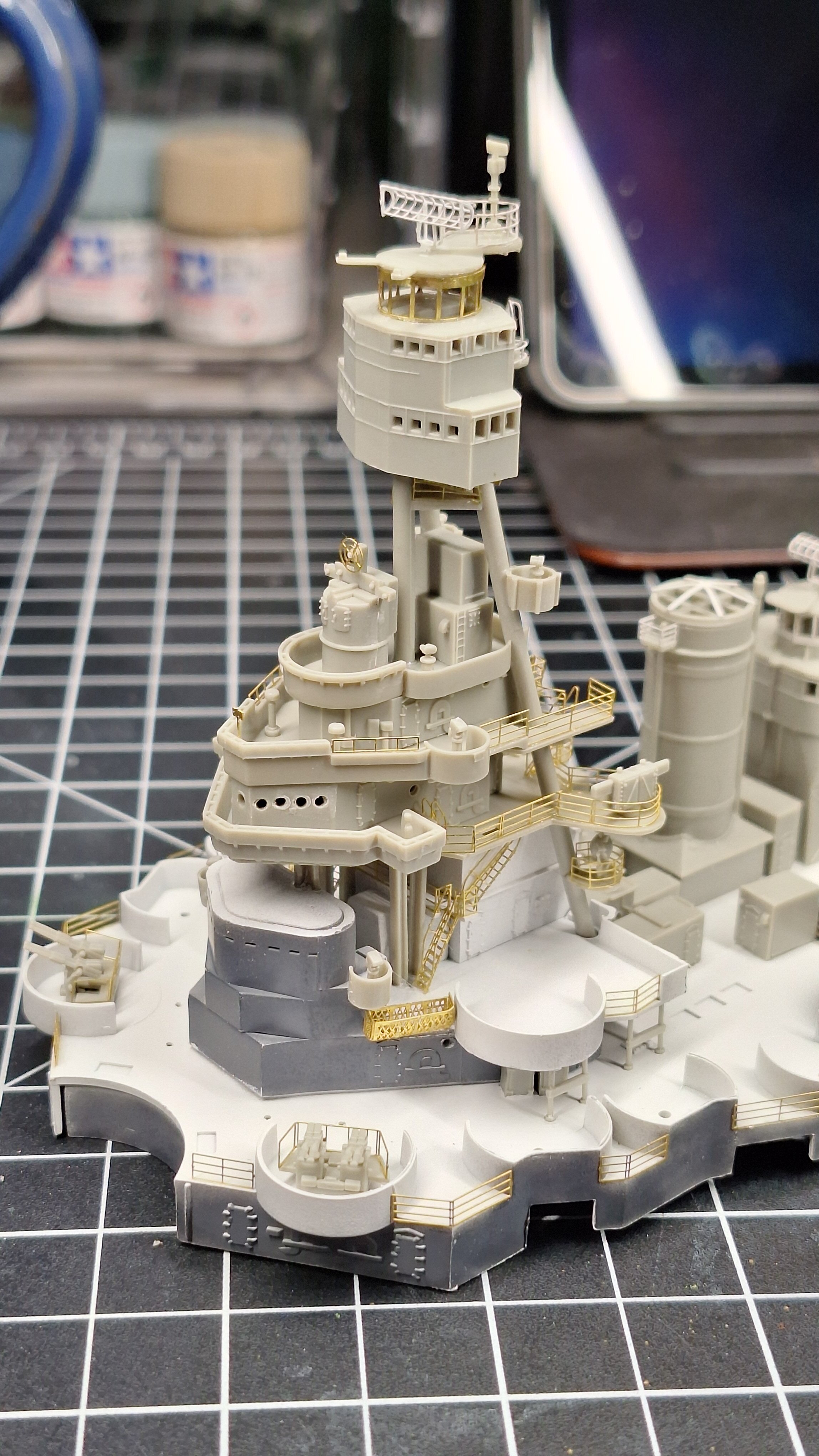 I reckon it's time for aa USS Texas update..... Did some more very fine PE work this morning. Eveything you see that's brass or white (primered white brass) is PE. I can only do PE early in the morning especially on Sunday mornings, classical music playing... It helps... LOL. So far, so good, the result will (hopefully) be worth all the time and effort.