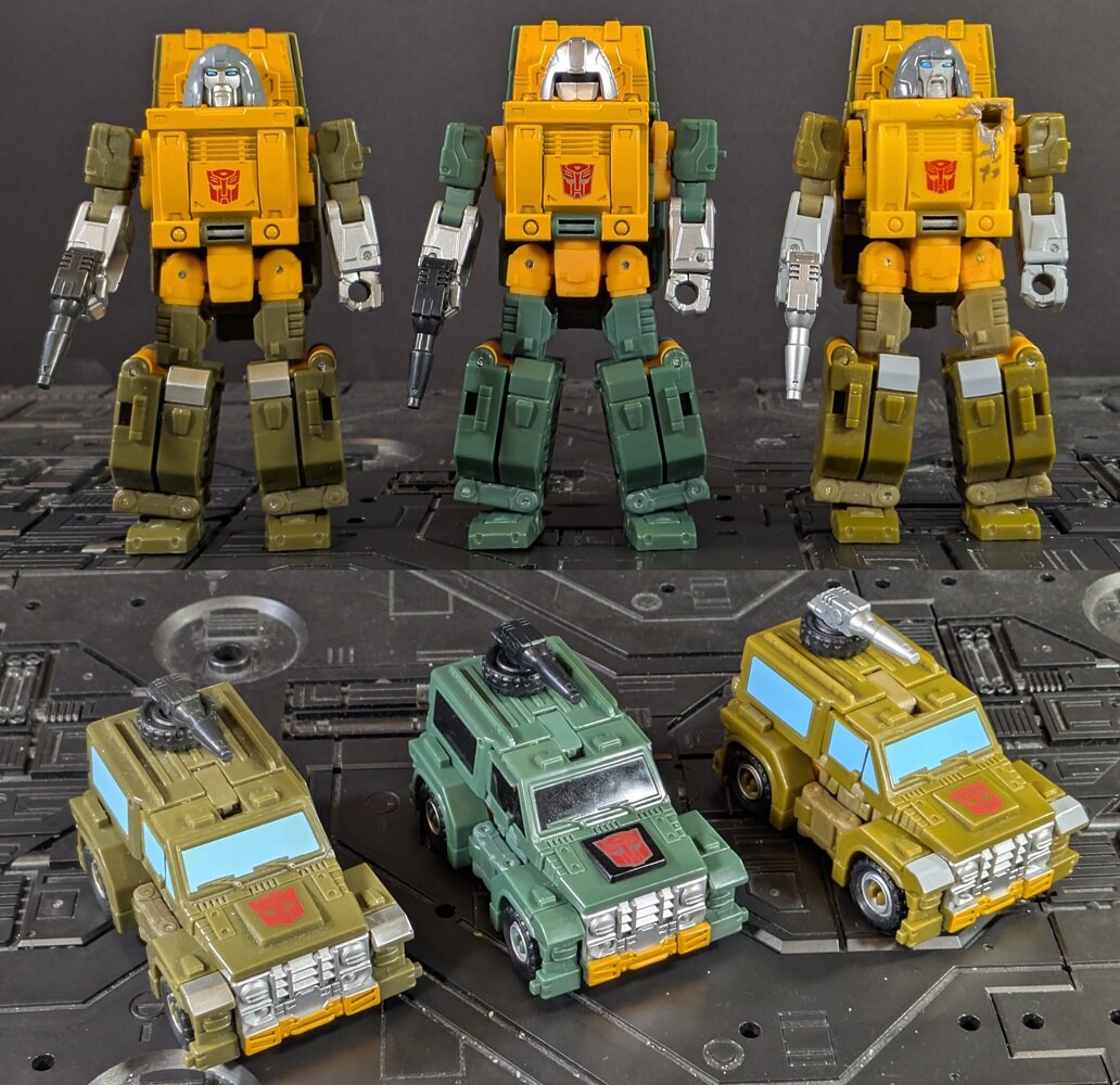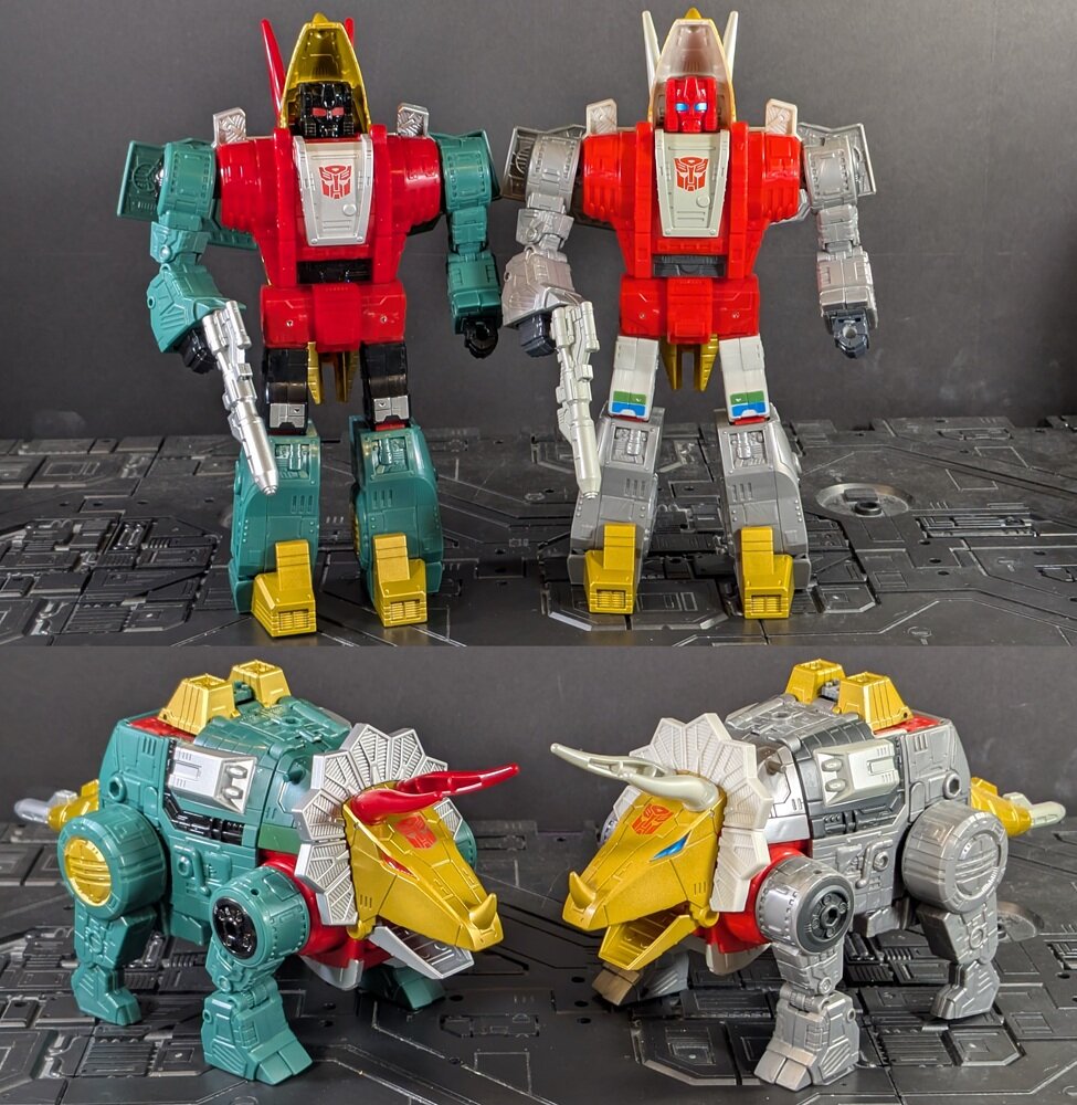 A few more repaints, then I think I'm just waiting on a few crossovers and, despite it still being warm enough to skip a jacket most days, I think I'm done for the year. Up first we have Seaspray's wavemate, Retro Brawn. And... he's kind of unimpressive. To be honest, I was going to skip him entirely but I got to thinking, "well, I have Retro Gears and Bumblebee, and Seaspray's Retro (especially if they do eventually release a toon version), and I started getting FOMO. So when I saw him on a peg at my local store I grabbed him. So he does have a new head that matches the G1 toy. They also altered the colors of the green to better match the toy, they painted the windows black instead of blue, and they put a spot of black under the badge on the hood. But that's where they stopped, and that's kind of disappointing. I mean, I get it's a Walmart line and they're not going to dump a ton of money into remolding figures for it, but the stocky cartoon body doesn't match the clawed jank that was the G1 toy. But forget about giving him claws and shoulder pads, they could have at least tampoed some sticker detail onto his waist and pelvis. The moral of the story is don't be me. You have SS86 Brawn? You've got all the Brawn you need then. Coming from Hasbro Pulse, we've got a two-pack of G2 Dinobots. One of which is Snarl. There's some minor paint differences. Most notably they painted the eyes red like the toys whereas SS86 Snarl went for cartoon blue. Other than that, they used a slightly darker shade of red for the parts that were already read, and a lighter shade of red for the parts that were gray, and that's it. The other Dinobot is Snarl, and it's pretty much the same story. The gray plastic has been swapped for a greenish blue, and he's got a silver lower jaw, red eyes, and red horns to mimic the original G2 toy. He's also got black thighs and a black head. But there's no changes to the actual mold. It'd have been cool if they'd has some remolding; keep the dino kibble on the outside like the toys, for instance, but broad strokes this is probably fine. A bunch of Leader-class repaints with no remolding is probably a tough pill for a lot of people to swallow. Still, especially with Grimlock still on shelves, it's kind of cool seeing the team together but sporting more individualistic colors. Again, maybe not for everyone, but I say bring on the expected orange Sludge and green Swoop. Finally, we have our NYCC-exclusive Nemesis Prime. Unlike more recent Nemesis Primes, this isn't simply a black repaint of regular Optimus. This version, one of the first to actually bear the name "Nemesis Prime" AFAIK, actually had screen time. And to mimic the cel-shaded colors of that episode (also the Hasbro version of the original toy), Nemesis Prime is more dark blue than black, with a messed up face also pulled from the episode. Aside from the new head and colors, he's the same figure as the Commander-class toy, with the same Matrix, gun, and forearm pipe-guns. He doesn't, however, come with a trailer. Instead, he comes with the Star Saber from Transformers Armada. Not the Vorpal Saber he wielded in the show, but I guess Hasbro figured that most fans would want the Star Saber more? The Star Saber is an awkward-looking sword, and that sword breaks into three smaller minicons. The Minicons are, of course, the Air Defense team- Runway, Jetstorm, and Sonar, from left to right. Note that I have Jetstorm mistransformed. His tail should slide back, then swing over his head to sit on his chest (a bit like Runway's). You might notice, however, the crack on one of the hinges. The tolerances don't seem to be right and the plastic is too thin for the stress, so I'm leaving it permanently where it's at. Aside from being the Star Saber, and aside from the fact that Armada fans seem to genuinely want more Minicons, I don't think they're much to write home about. They're a little larger than the Siege Micromasters, with slightly better articulation, but not by a lot. Moving back to Nemesis, he of course transforms into a truck. Although he doesn't come with a trailer, he can pull the one that came with Optimus. He can even combine with it; despite not technically needing them, he's got the head and fists for combined mode. Kind of makes you wish he came with a trailer of his own. What makes you wish it even more is the price tag. Optimus, as a Commander, was $90, right? Well Nemesis here is $80. In other worse, he's giving up the trailer and extra play patterns that come along with it for a trio of honestly-not-that-great Minicons that turn into a sword, and the price difference is a measly $10. I dunno about you guys, but I think I'd have rather paid $10 more and got the trailer.- 17755 replies
