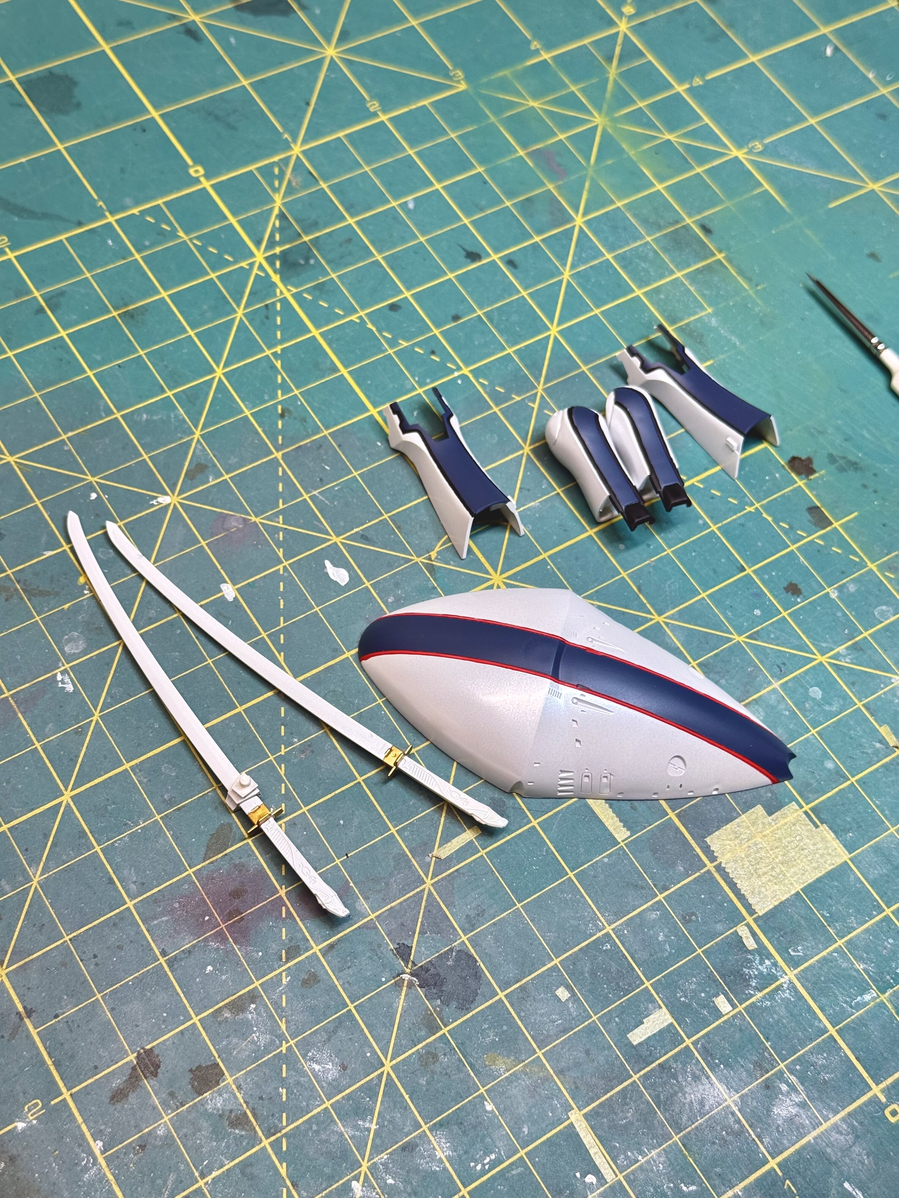 I am on the final stretch with the Wave 1/144 LED Mirage Colus. Just needs panel lines, decals and a few areas to dial in and touchup. Would also like to invest in a vise sometime. The empty jar with a pile of tac works but I want to up my game. Haha