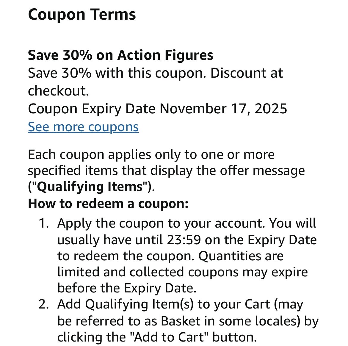 Ahhh yes, click "See more coupons". If it shows a list, or link to list of toys with this one included, then this may be the regional type we spoke of. I have gotten these, and can usually click down to a link showing all the discount applies to, and with something indicating the region, like "Northeast" etc. Others have sussed out the link, "Southeast", "Northwest" and posted it so folks could see what was discounted where. Sometimes there's another Macross item in the list. When I saw this included, another DX, or at least HMR, also appeared with the same discount.