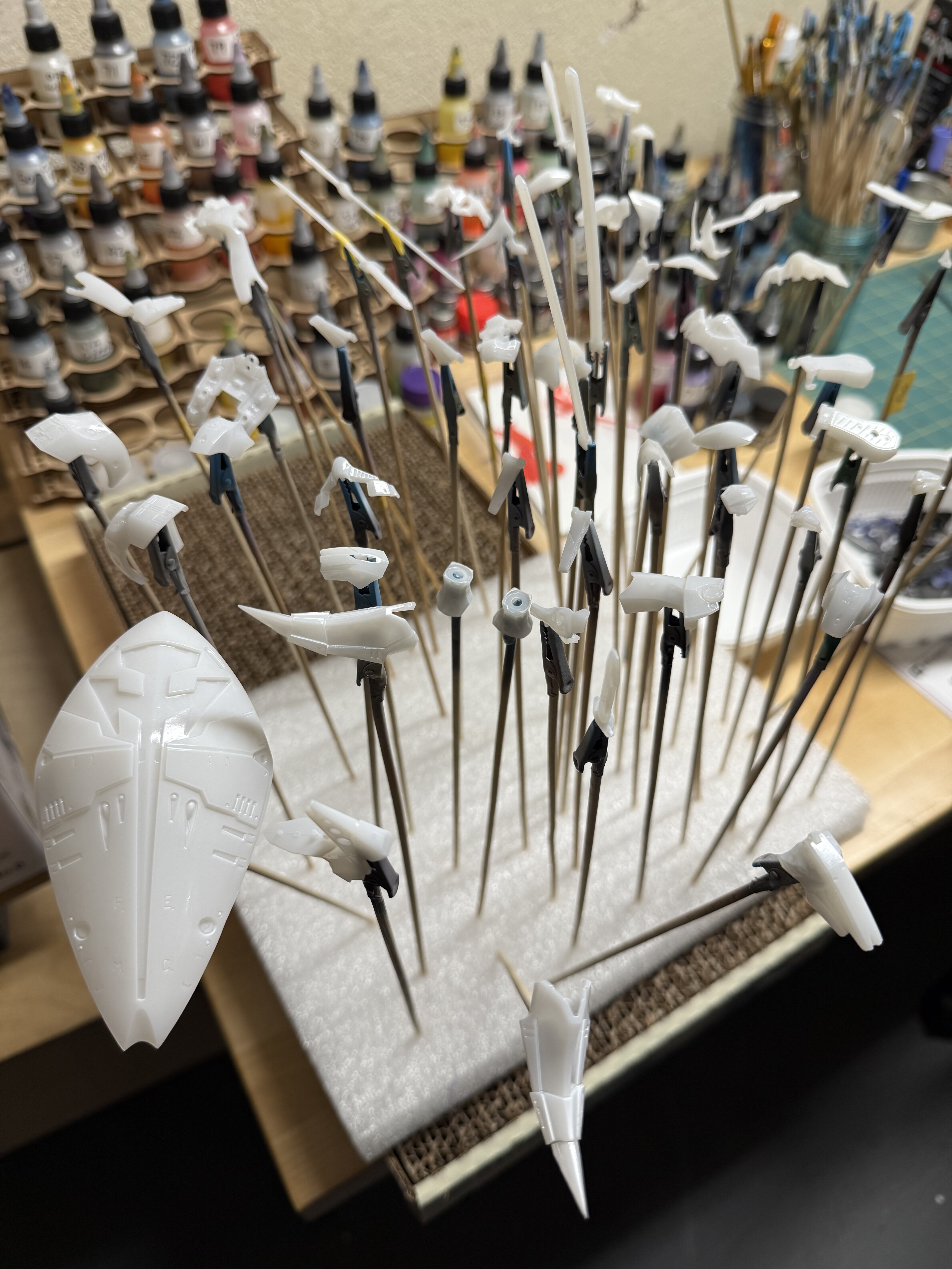 It’s LED Mirage time. 1:144 light armament version. Very excited for this little gem. The pearlescent armor along with silver and gold spot colors are going to look great! The armor is semi-transparent which may allow the dark purple/silver and lavender frame get a little reveal here and there. Might be a cool effect 😊 Only issue so far has been the poly caps in the knees were so tight it caused the plastic on both to split and need repairs. As long as I can get it into a simple standing pose when completed that’s fine with me.