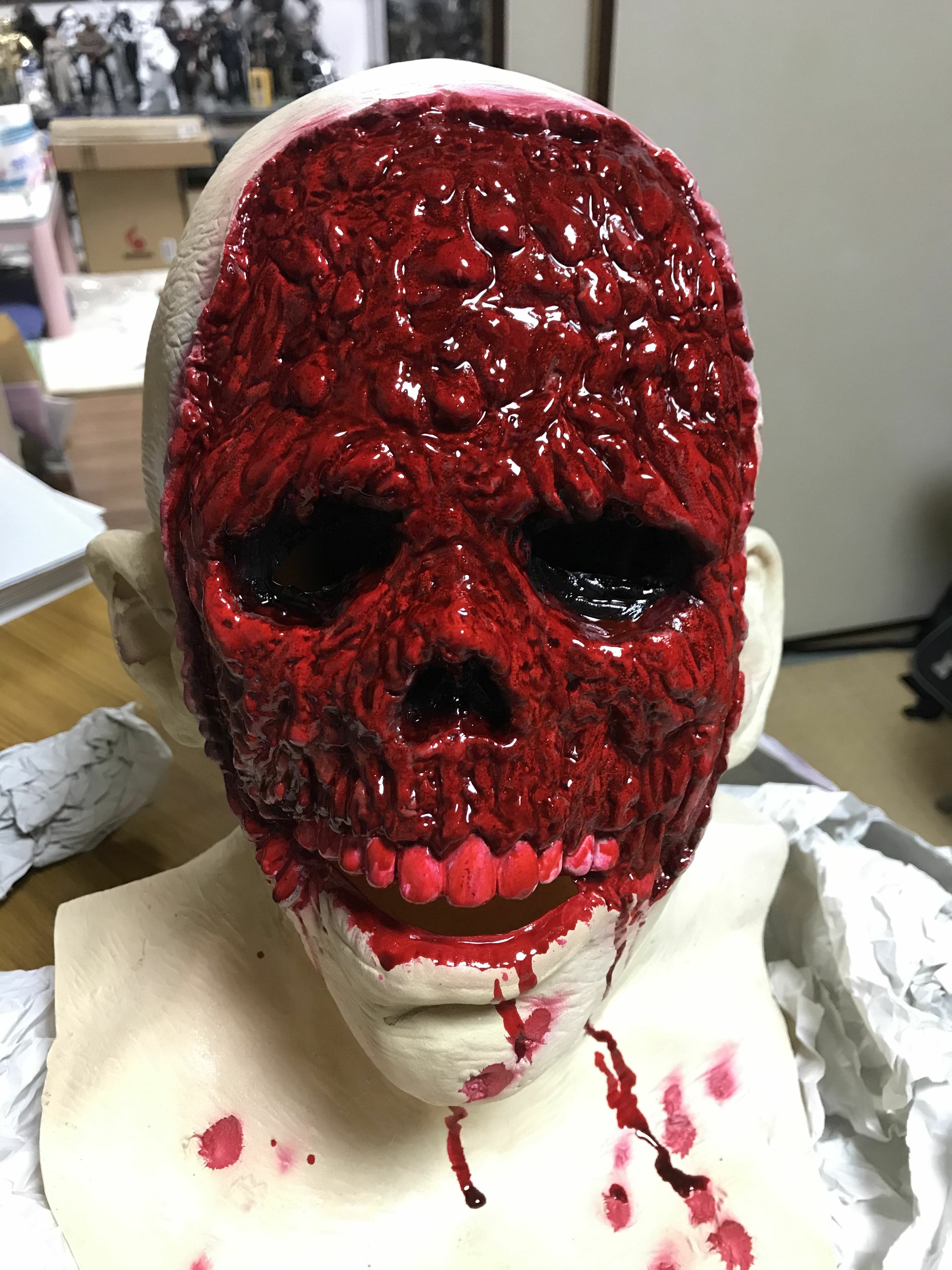 I used to work at a medical university and this looks like one of the things we saw on a bed in the willed body room once. Although the real thing was a bit more unsettling sine the face skin was peeled down, yet still attached and the eyes were still in the sockets. Some rather gruesome stuff over there.