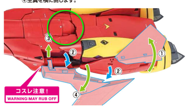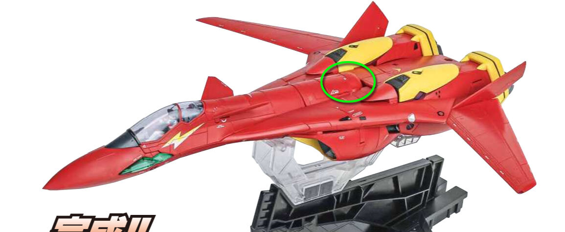 I mean, there's probably no reason they couldn't use those holes to help anchor the sound booster, but judging by the HMR (and the Yamato VF-19s for that matter) the holes aren't in the right spot for the VF-19P fins anyhow. I am hoping the final product isn't so sloppily painted though. I guess they wanted those spots to look like thrusters or something, but they couldn't even get the holes painted black around the inside.
