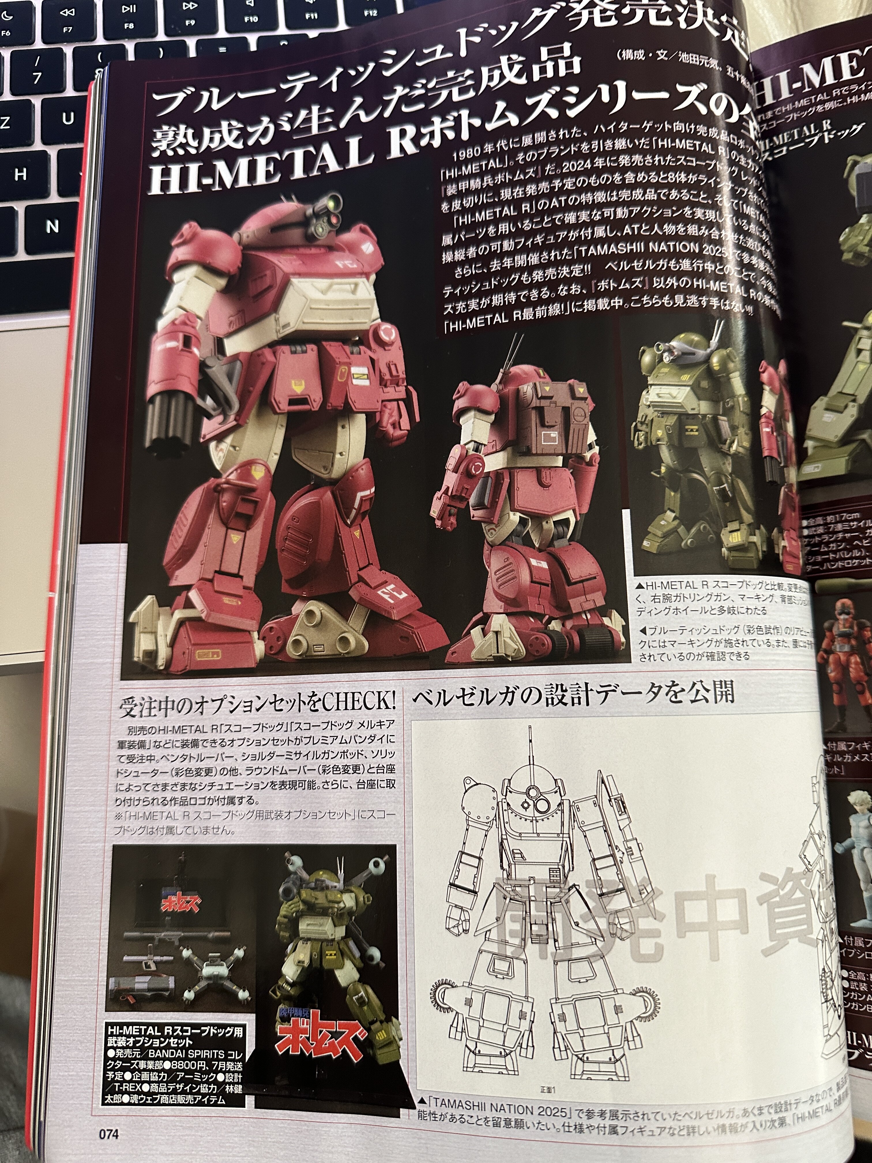 The New Hobby Japan Magazine has a two page spread on the Hi-Metal R series page 074-075 clearly showing that the ATM-09-GC Brutishdog will be the next release! It also has an overview of all the releases so far, also showing what pilot figure comes with what unit! Sadly the Fayana figure that will accompany the Brutishdog was not shown. I'm sure the pictures will be posted on Hobby Japan Web soon!