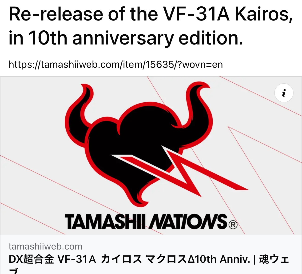 Special Sauce started following DX Chogokin VF-31A Kairos - Macross Delta 10th Anniversary