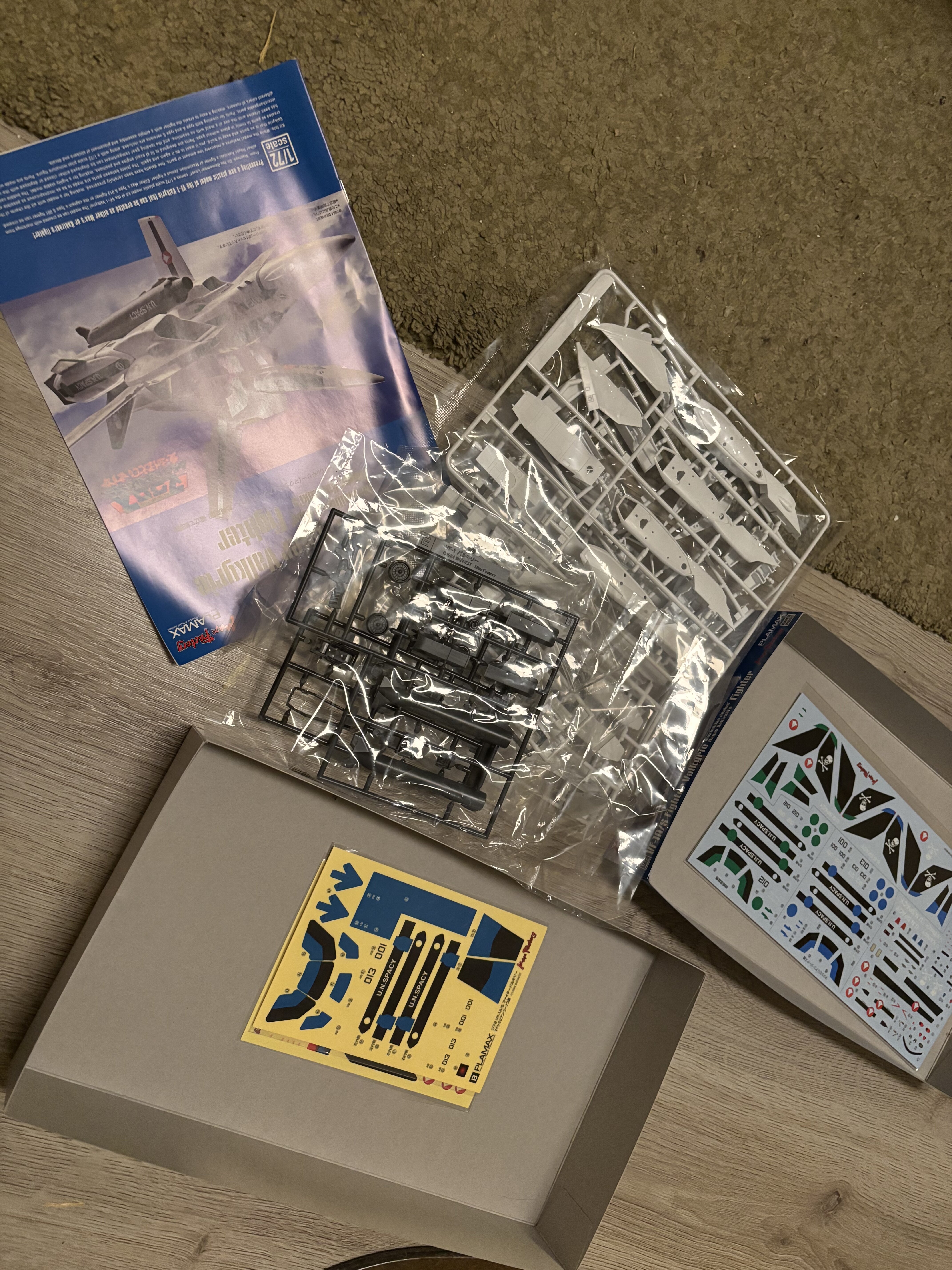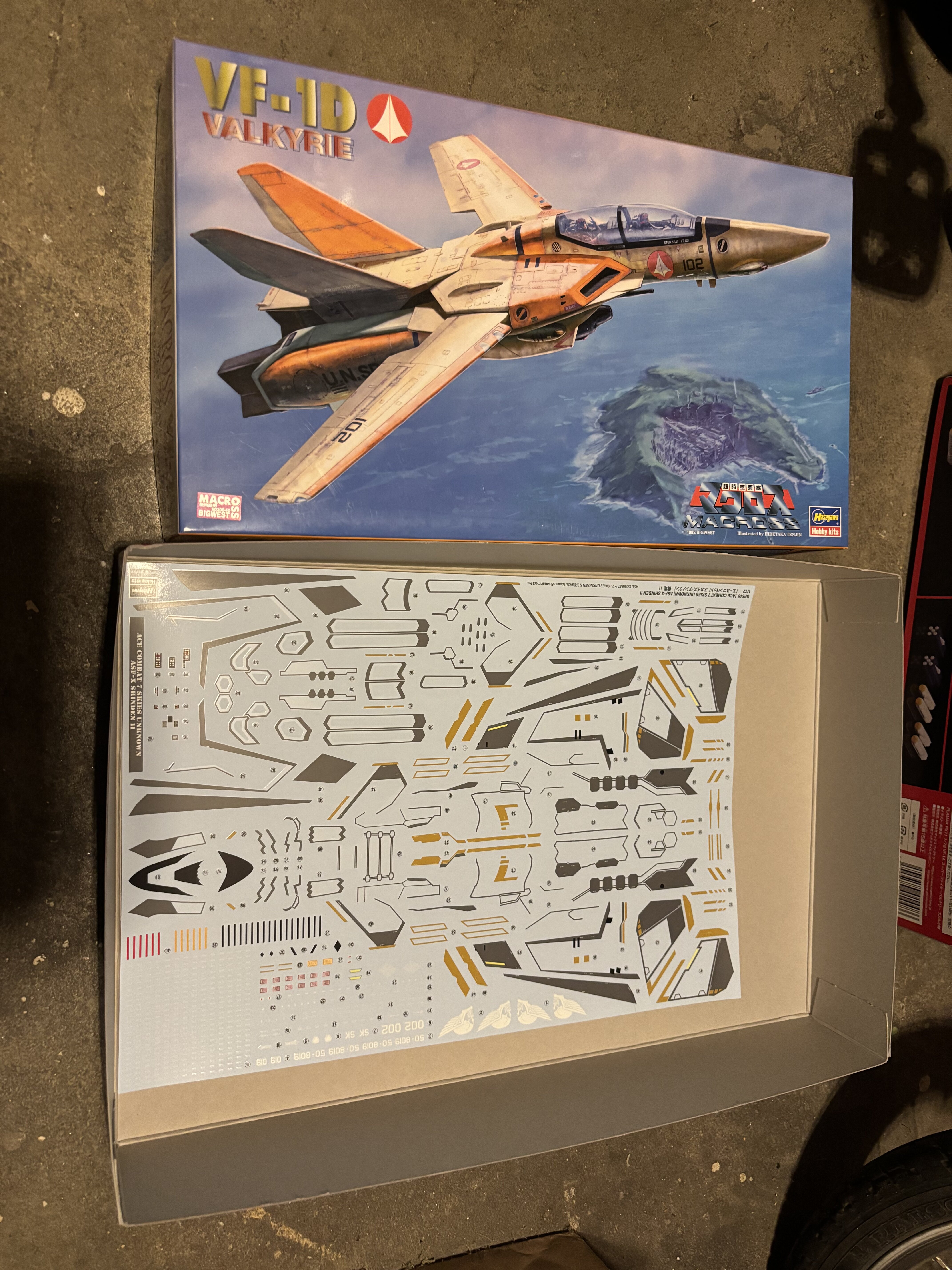 @wm cheng here you go. Giant decal sheet. VF-1D box for comparison. My kid decided I should build a plane. Plamax VF-1 it is.