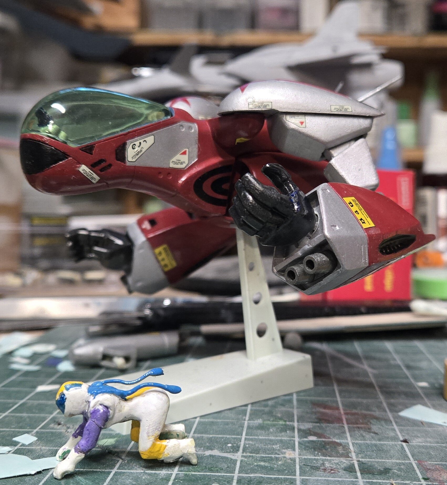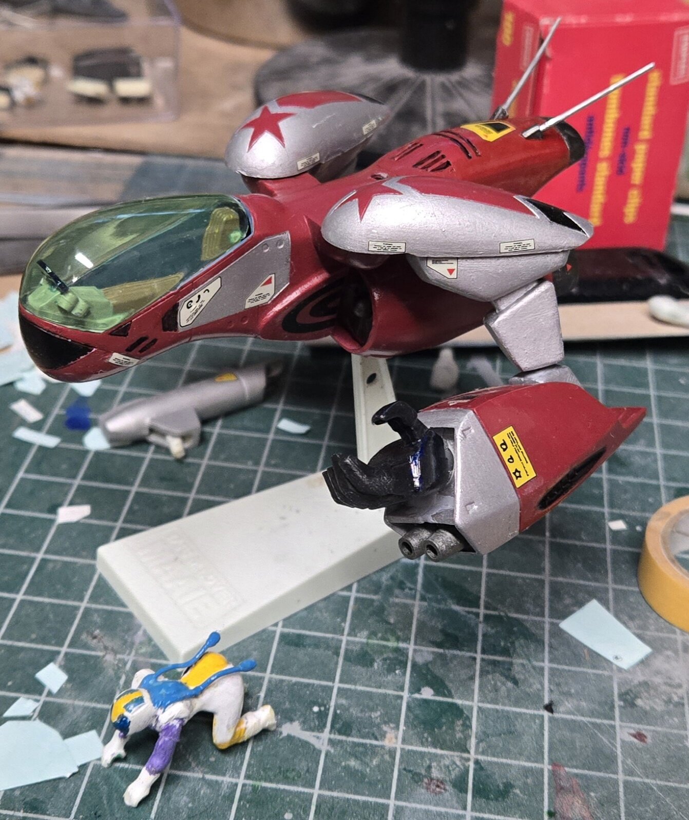 Another reissue of an 80's kit. This time a 2000 repop of Imai's Super Dimension Century Orguss M.Lover Maaie from '83. Getting close to finishing this up. Just gotta finish off some work detailingvthe pilot, do a little weathering and dull coat.
