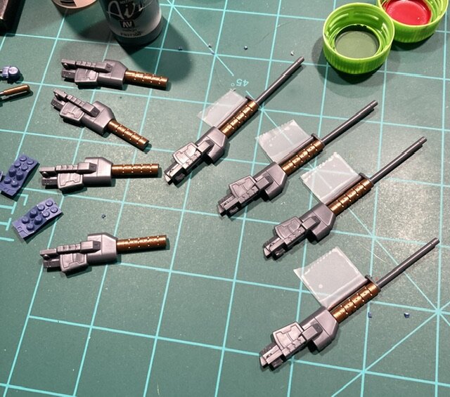 AZ Death Saurer on the way, so gotta finish my HMM Gun Sniper. Left brain---WHY are there so many gun barrels to sand and paint? Right brain---duh, you bought the GUN SNIPER