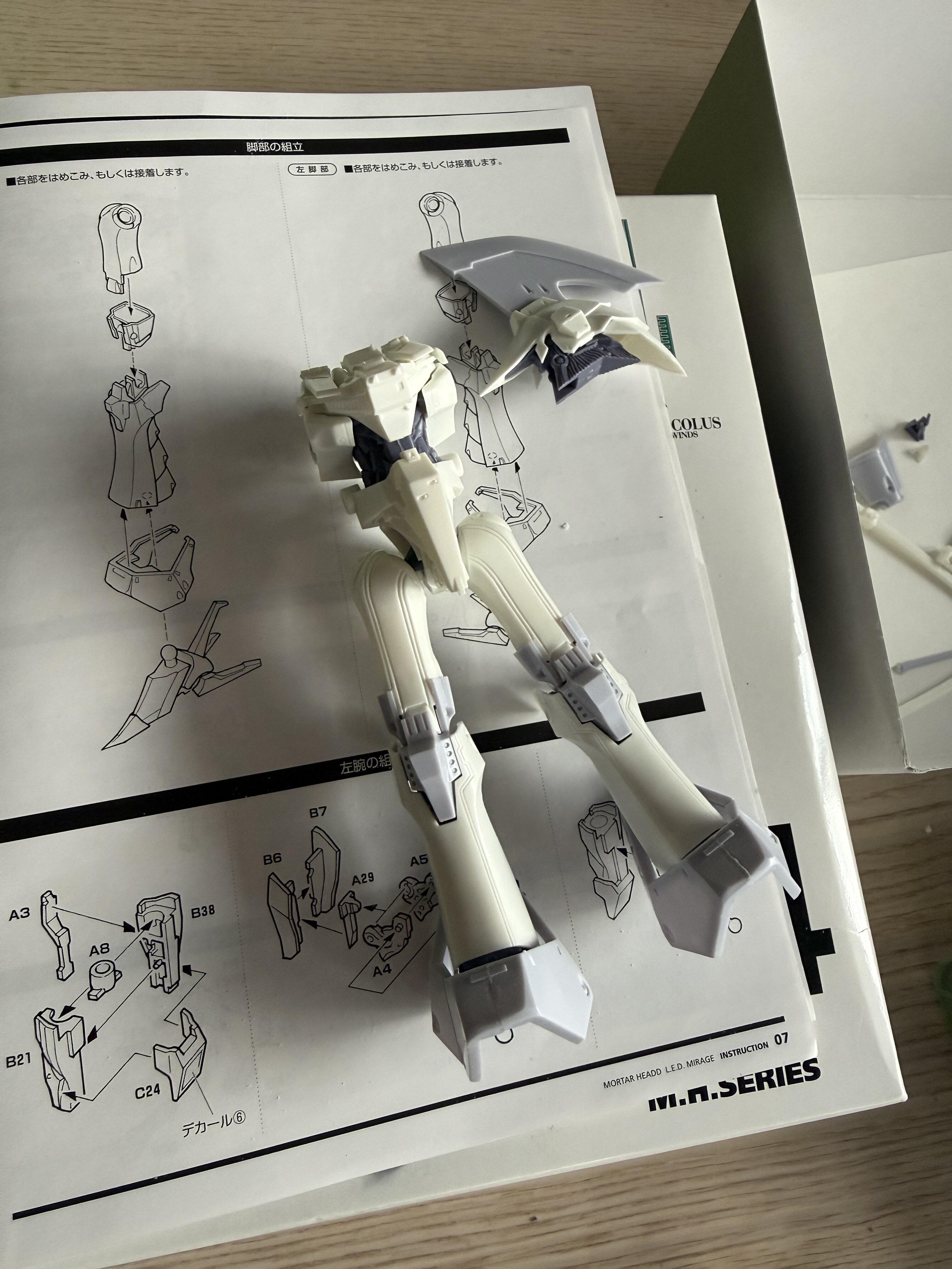 Got a few more things cooking. I think 4 builds are in the mix. Finally got my first resin kit degreasing and 3 plastic kits in various stages of completion. the Terror Mirahe is waiting in paint to arrive, the KOG 7777 has only been test fit and the newest addition is the Wave 1/144 LED Colus. Man I love these Wave kits. Really fun to build.
