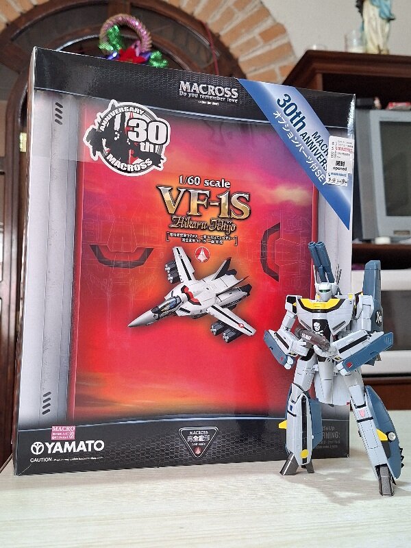 Finally got me a Yamato VF-1S Hikaru. From Mandarake for 9k yen. Not a fan of Arcadia super bright whites, I even dislike a bit the Yamato white gor TV releases. Gotta love Yamato DYRL releases off white or the Bandai DX off white. Got a set of Strike parts to equip it later.