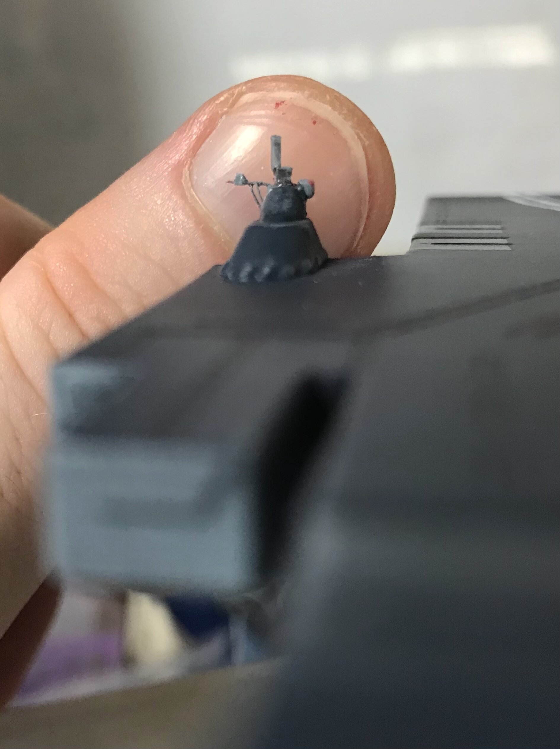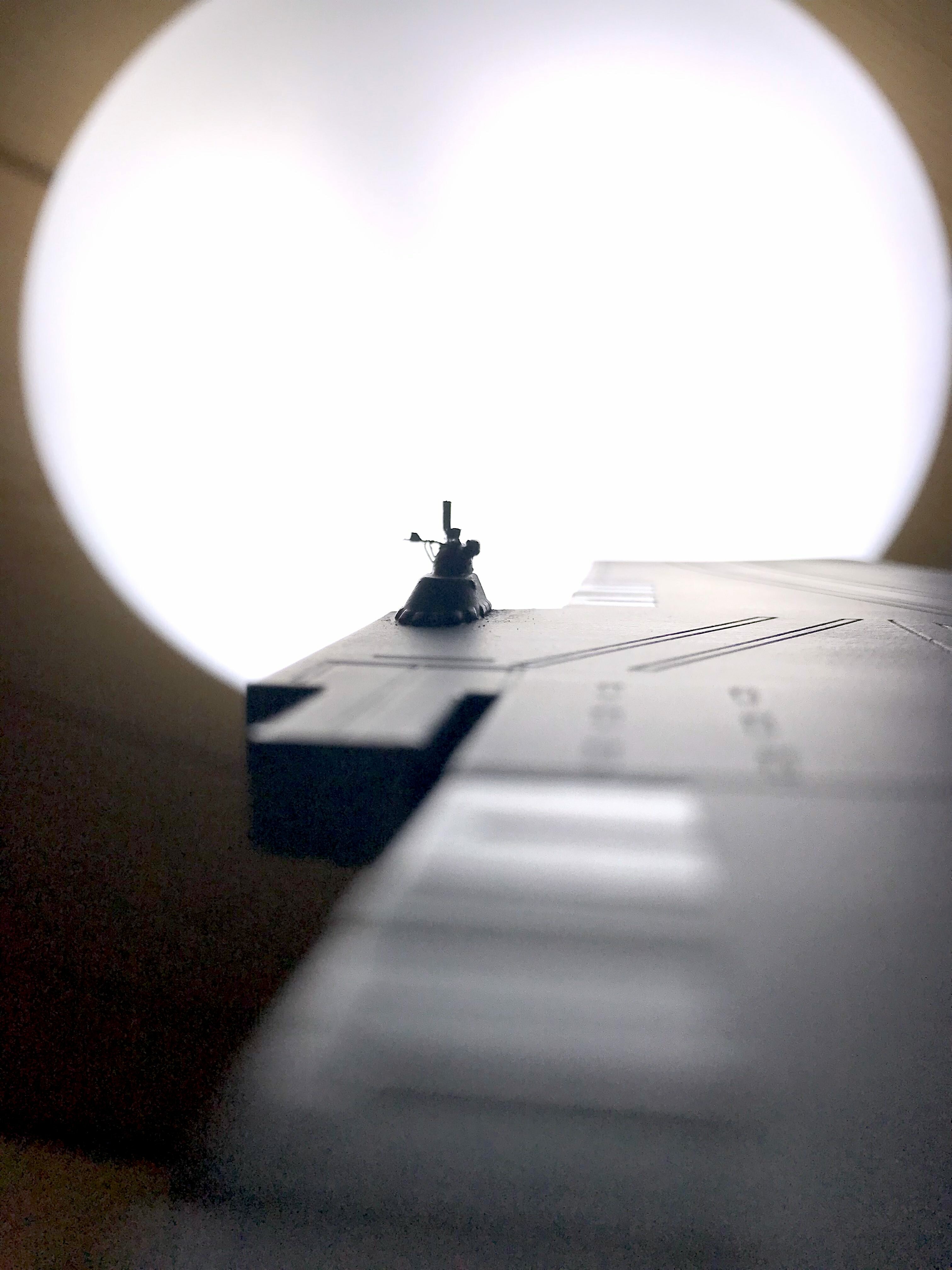 2. I'm pretty much done with the Prometheus. The bridge was definitely the biggest challenge. Again, the 3D model was not detailed enough, and I don't think something so small would survive resin printing anyway... ...so instead I scratchbuilt a conning tower with acupuncture needles and masking tape. I'm sure @pengbuzz would approve. πŸ˜‰ Several, in fact... The TV version lacks significant surface detailing on the legs. Certainly not. Most of it's not my work, nor can anyone involved claim the IP rights... and I'm really more of a 3D-printing service than a virtual modeler, anyway. I do take commissions, though! 😊