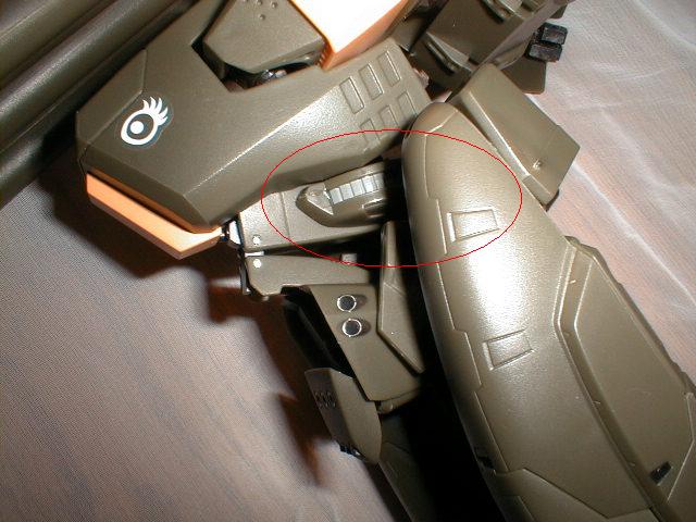 Pop the pegs loose from the payload area and pull the waist assembly down (circled). This picture shows an exaggerated extension of the waist area - you should push it back up a little before continuing: