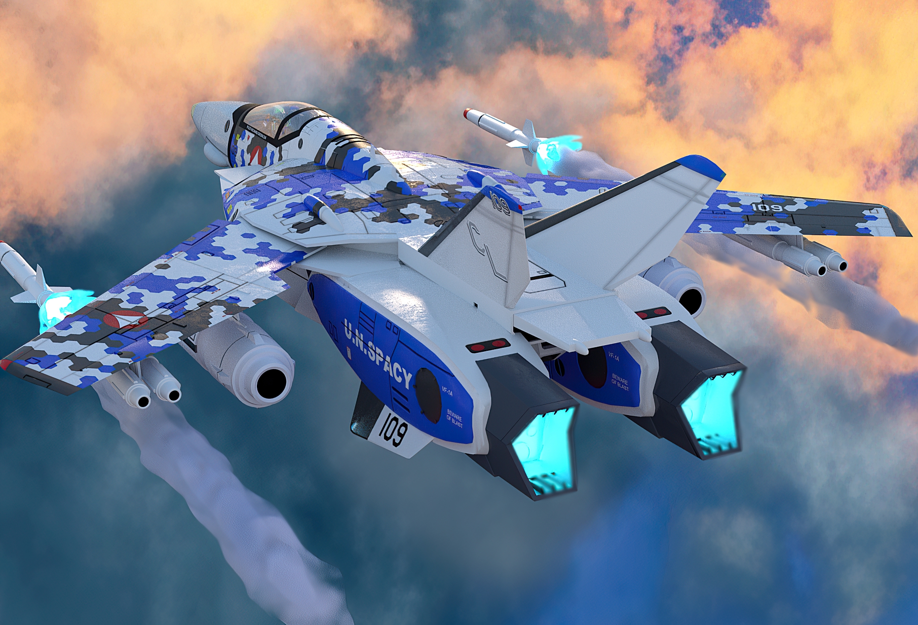 Testing missile and exhaust effects. Probably need to tone down the brightness of the flames, but definitely sticking to the Macross-Blue exhaust colors.