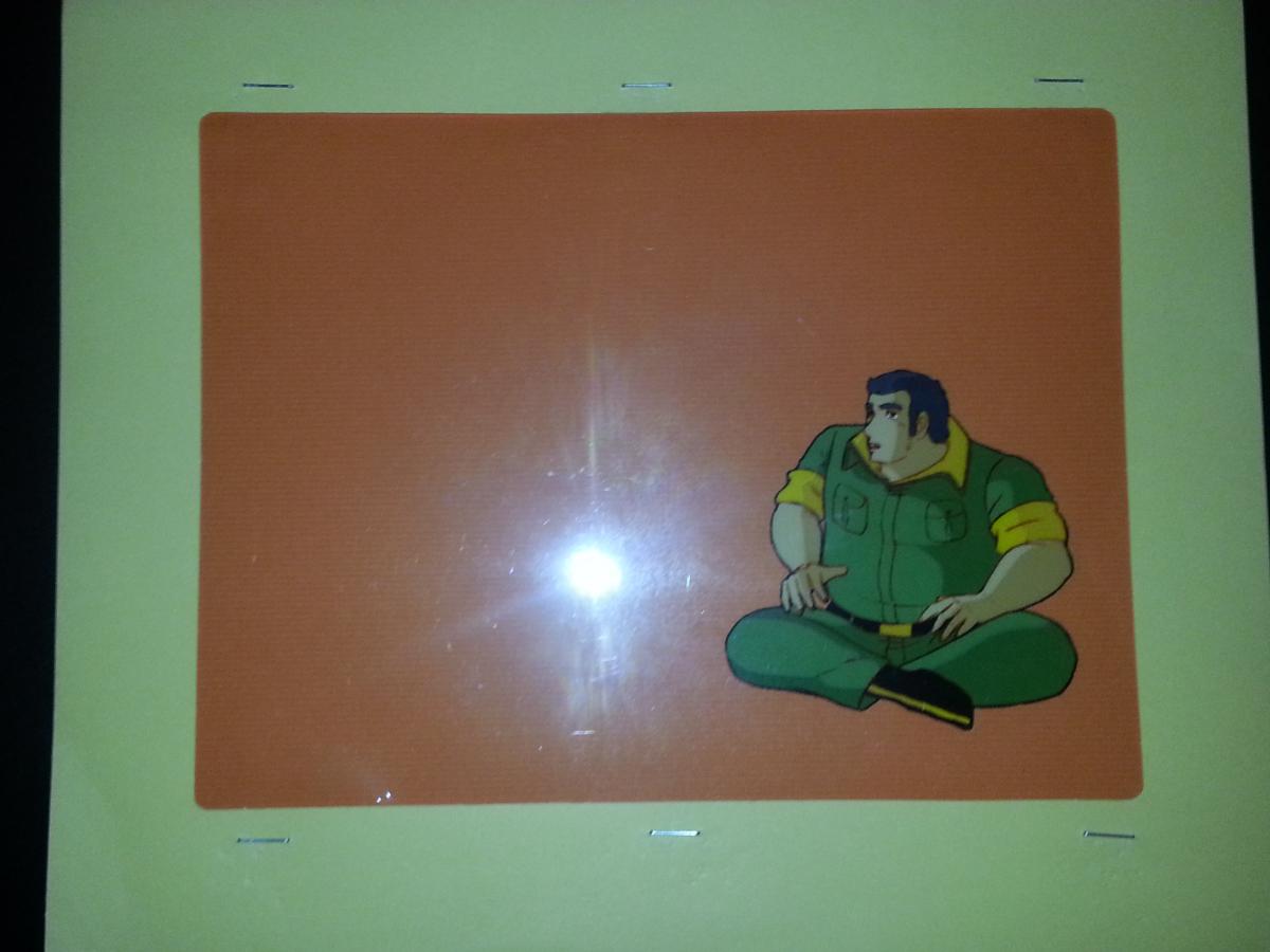 4) Yamato/Star Blazers Sgt. Knox cel. This cel was mounted via staples in a thick paper frame by someone in its past. Cel shows Knox seated "indian style" from a scene where a holographic hulla girl is dancing. A cool cel that i have been proud to own. ($50 + shipping)