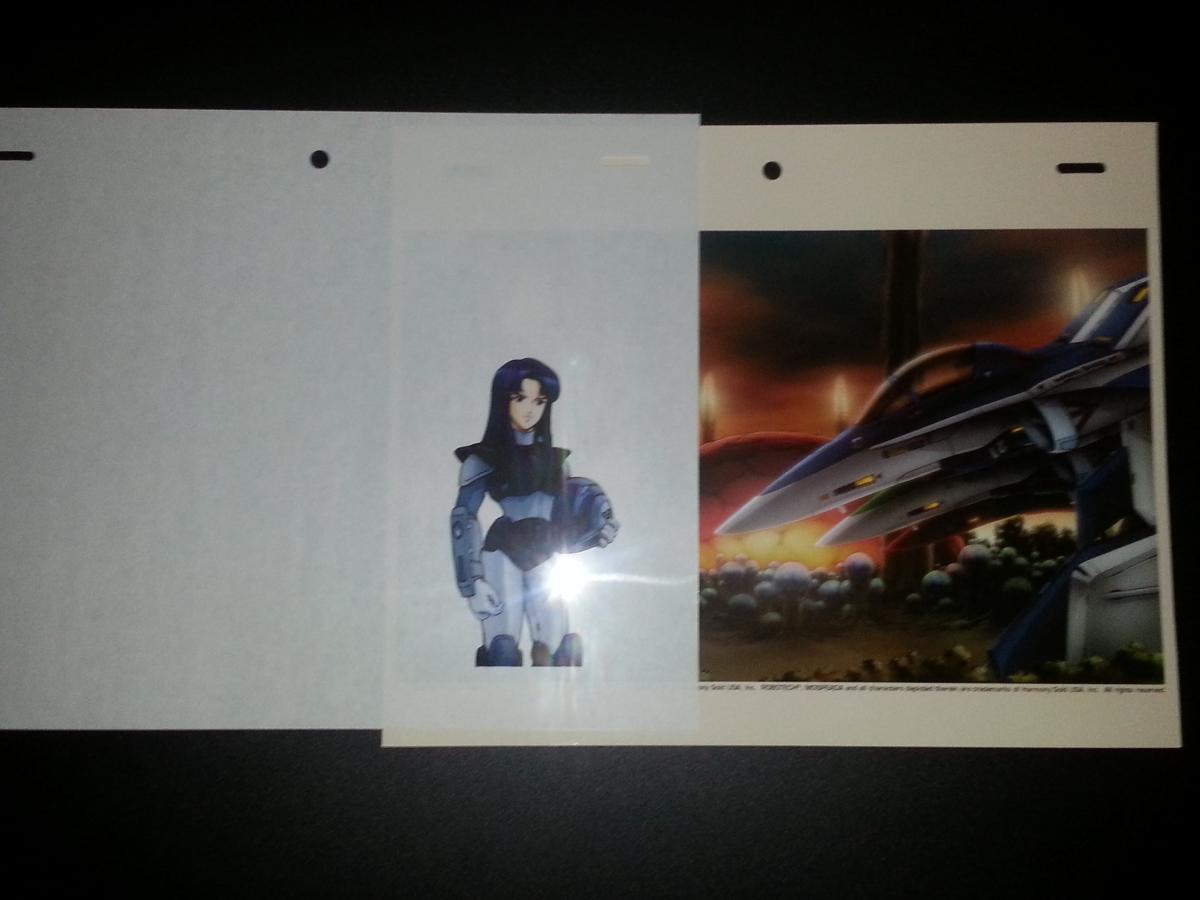 9) Non-production cel Sue Graham Cel. This cel was produced for the Robotech Masterpiece Alpha line. Comes with original back ground as well. ($19 + shipping)