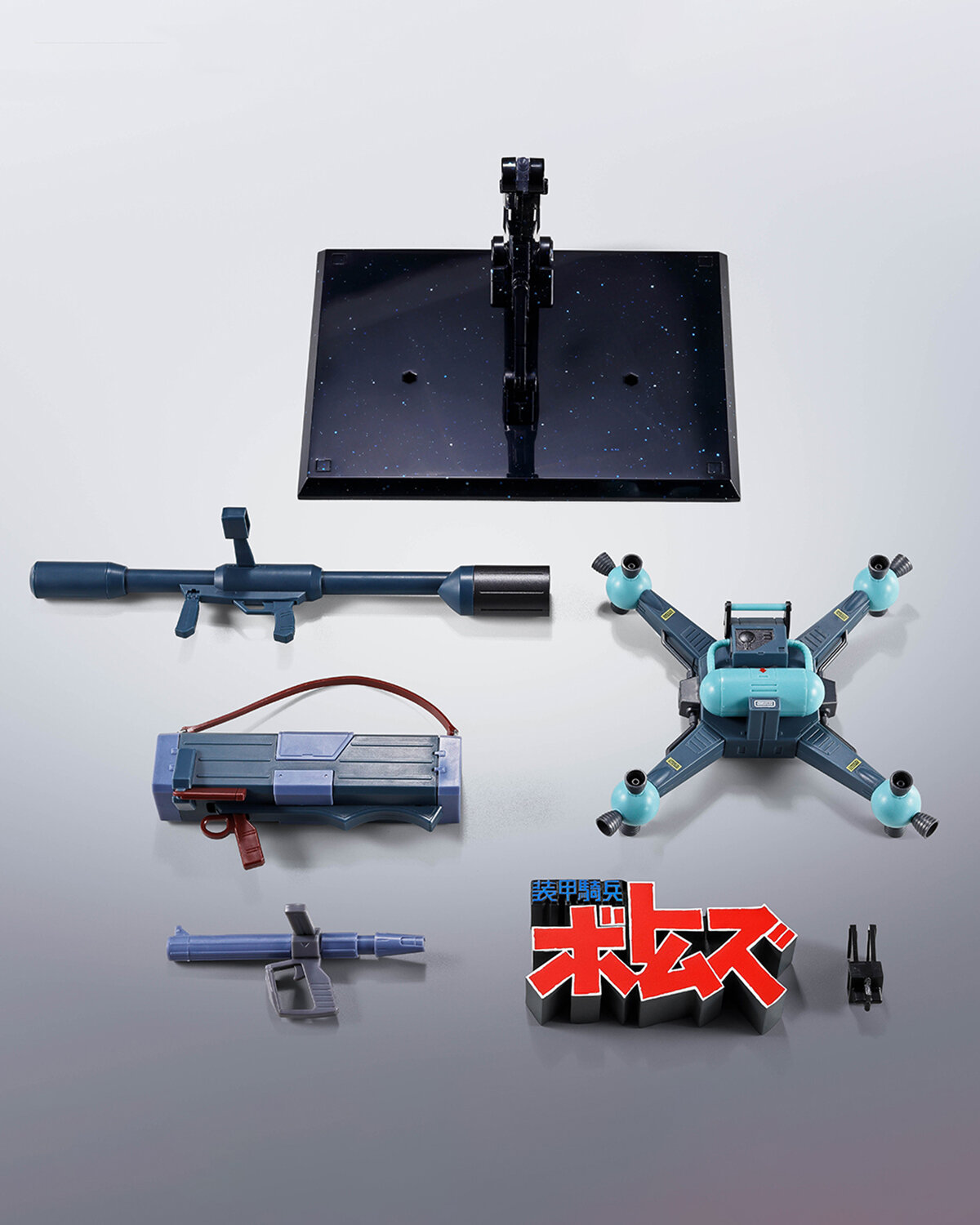 HI-METAL R, Optional armament set for SCOPEDOG & Stand.... Release July 2026 8,800 yen (incl. 10% tax); 8,000 yen (excl. tax) The "Scopedog Weapon Option Set" includes the completely newly sculpted "GAT-49min, 50mm Pentatrooper" "SWAT-38, 9 Tube Shoulder Missile Gunpod", along with repainted versions of the "ATC-BR1-S Round Mover, and SAT-03 Solid Shooter Bazooka, expanding display and action possibilities. With this lineup of weapons and equipment, you can recreate a wide range of combat scenarios and mission settings from the series. The set also comes with a space-themed display base, complete with a three-dimensional work logo that can be attached to the base, adding an extra layer of presentation value. [Set Contents] ã· GAT-49min, 50mm Pentatrooper (L: 8cm) ã· SWAT-38, 9 Tube Shoulder Missile Gunpod (L: 10cm) ã· SAT-03 Solid Shooter Bazooka (L: 18-23cm) ã· ATC-BR1-S Round Mover (11cm) ã· Base logo (8.5 cm) ã· Base set The Scope Dog weapon option set, including the completely new "GAT-49min, 50mm Pentatrooper", "SWAT-38, 9 Tube Shoulder Missile Gun Pod" and "Base Logo," is now available in the HI-METAL R "Armored Trooper Votoms" series. The "ATC-BR1-S Round Mover" & "SAT-03 Solid Shooter Bazooka" retain the same extension and articulation gimmicks as the existing models, but with new paintwork. These weapons can also be equipped to the "HI-METAL R Scopedog" (sold separately). It also comes with a molded-coloured base inspired by outer space and the series logo, allowing you to expand your display of the H-IMETAL R "Armored Trooper Votoms" series. I honestly would have preferred no stand but more weapons but the 3D Logo is a cool gimmick! ðĪ