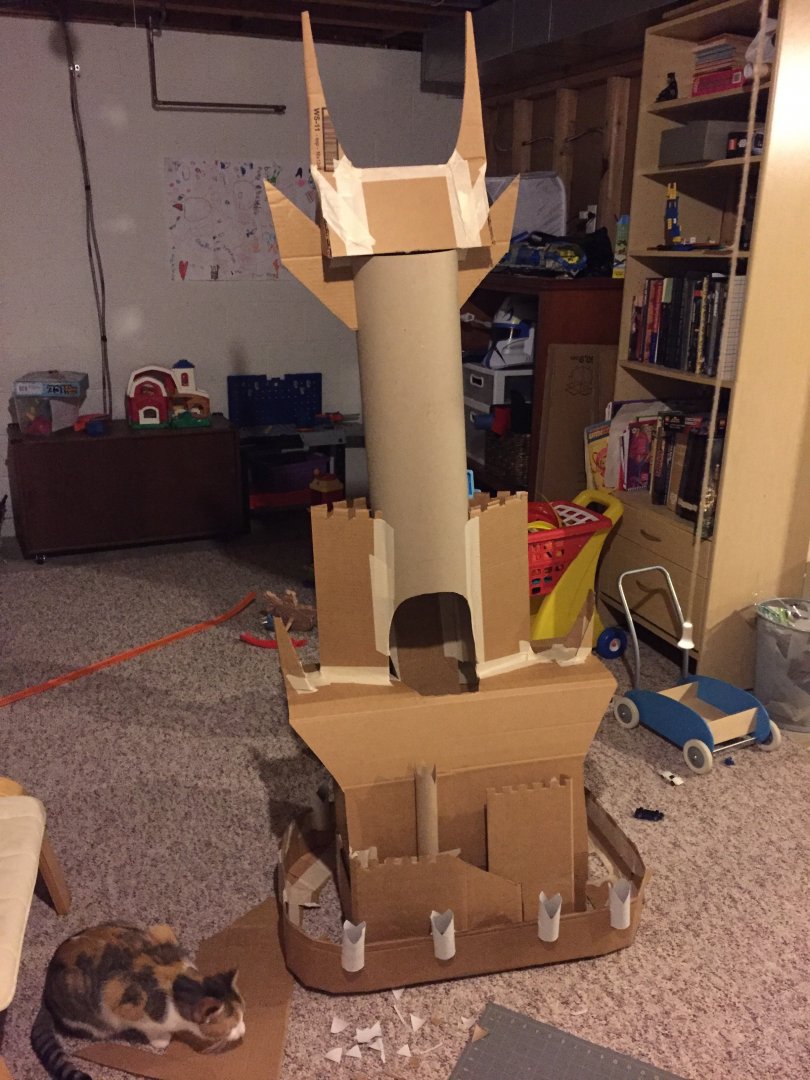 Kelsain Posted October 22, 2017 Posted October 22, 2017 So, as I'd mentioned in the 1/20 Valkyrie thread, my son was going to be Sauron for Halloween. He then changed his mind to " Adam West Batman," but then said I should be Sauron. He's 4. I'm finally making progress on that costume, and it's ready for paint tomorrow. Bonus: the cats are already eyeing this for a great fort. I also have to figure out wtf is going on in my my engine after replacing an O2 sensor... Quote